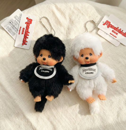 Monchhichi COLORS Plush Keychain Bag Charm — Vintage Y2K Kawaii Doll Accessory (Black & White)