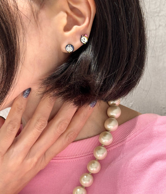 Doraemon & Dorami-Inspired Silver Post Earrings — 4-Piece Handmade Set