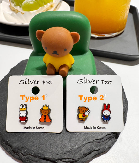 Miffy Inspired Bunny & Bear Earrings — Handmade Mismatched Silver Post Studs