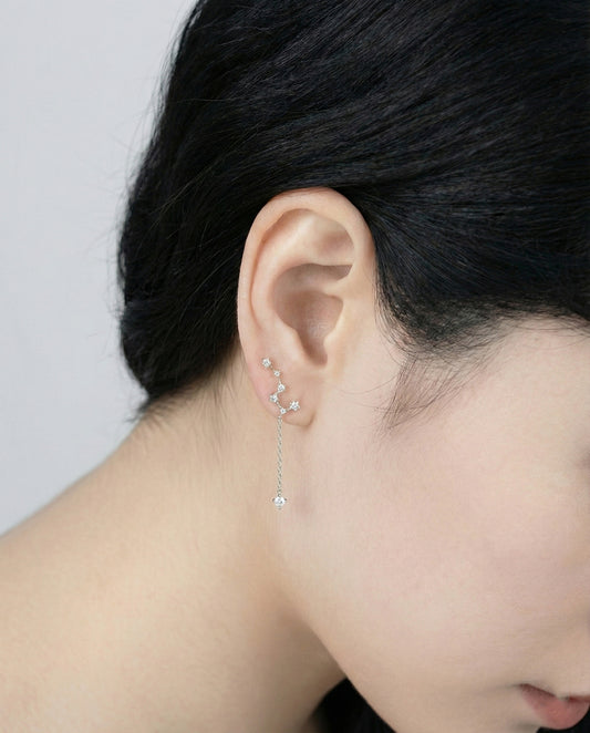 Made in Korea Big Dipper Constellation Ear Climber | CZ Star Drop Chain Earrings | K-Beauty Celestial Jewelry