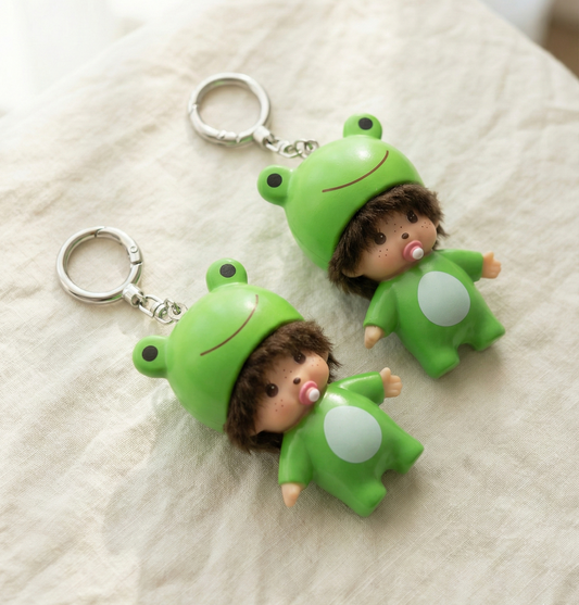 Cute Frog Baby Doll Keychain Bag Charm – Kawaii Y2K Backpack & Purse Accessory with Crystal Beads & Heart