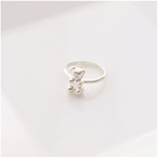 925 Sterling Silver Teddy Bear Ring – Cute Unique Adjustable Gift for Women & Girls