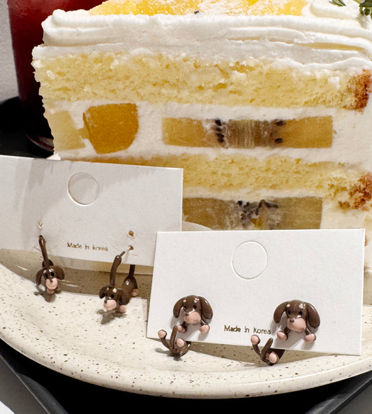 Dachshund Dog Earrings – Hoop & Front-Back Drop Style, Brass with Sterling Silver Post, Kawaii Puppy Jewelry Gift