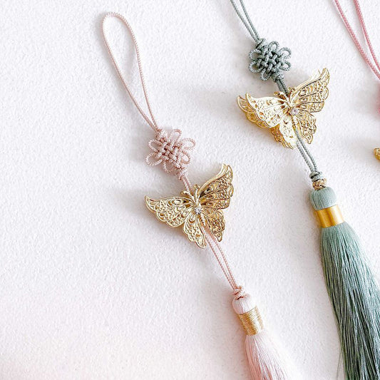 Korean Butterfly Norigae Tassel Charm - Traditional Knot Keychain
