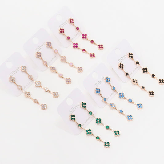 Clover Drop Earrings - 925 Silver Posts with Cubic Zirconia in 6 Colors | Vintage Inspired Dangle Earrings