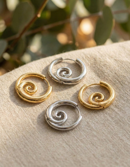 Modern Sculptural Spiral Hoop Earrings - Gold & Silver (Titanium Post, Clicker Style)