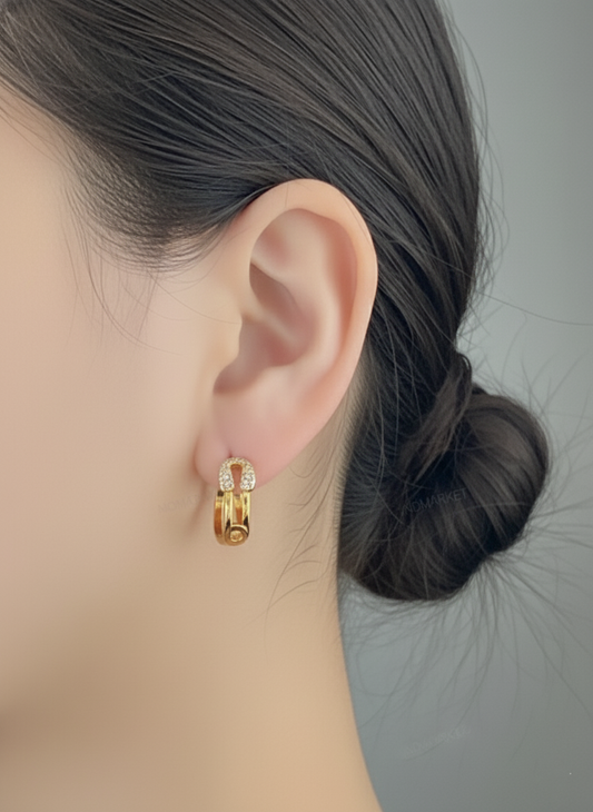Pave Safety Pin Huggie Hoop Earrings Gold Silver