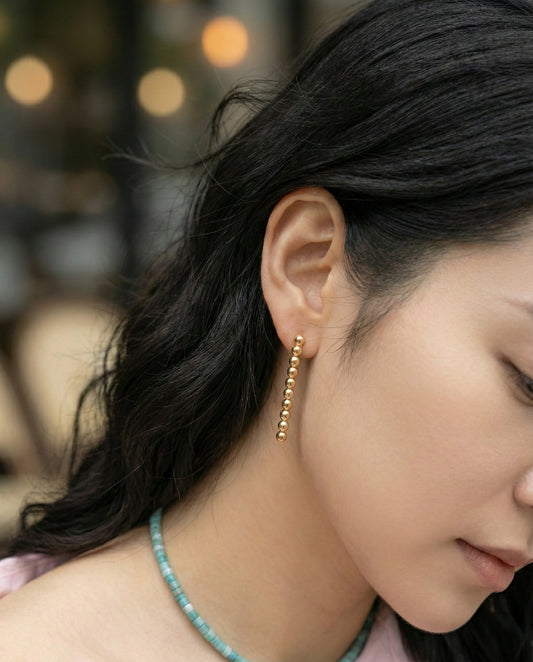 4-Tier Graduated Sphere Bar Earrings - Titanium Post (Gold/Silver)