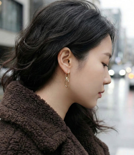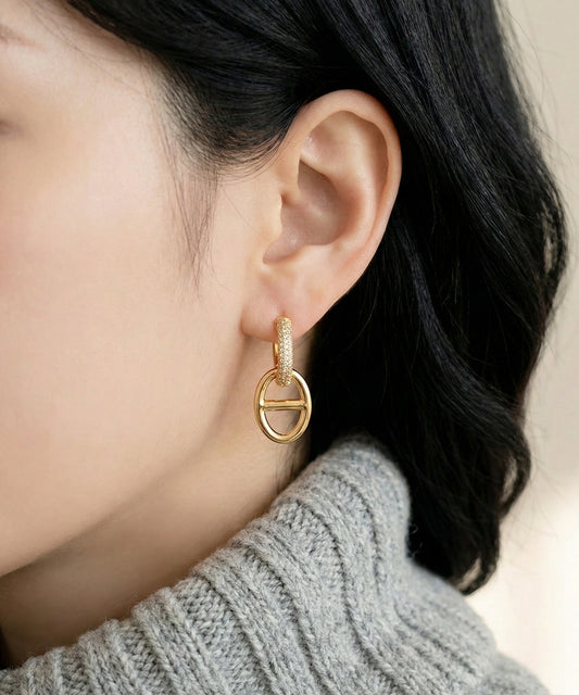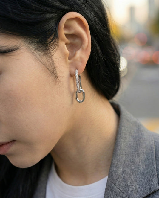 Luxury Pavé Knot Chain Link Drop Earrings - Gold/Silver Titanium
