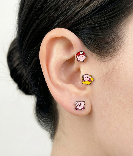 Kirby Pink Puffball — Star Allies Inspired Handmade Barbell Earrings Made in Korea