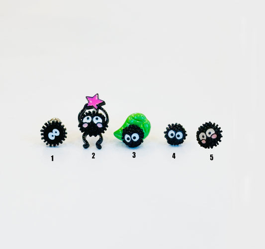 Soot Sprite Susuwatari Barbell Earrings – Studio Ghibli Inspired Surgical Steel | 8TTITTO8