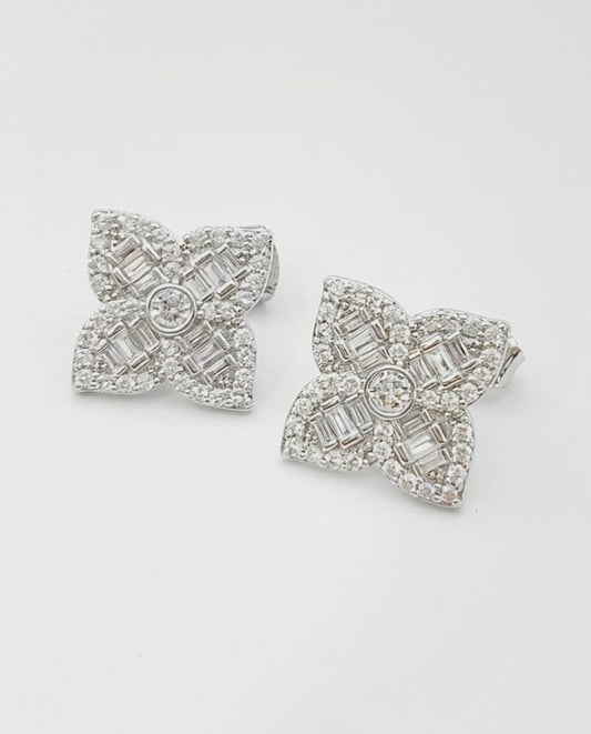 Luxe Floral Baguette Cut CZ Stud Earrings - 925 Silver Post 3 Colors