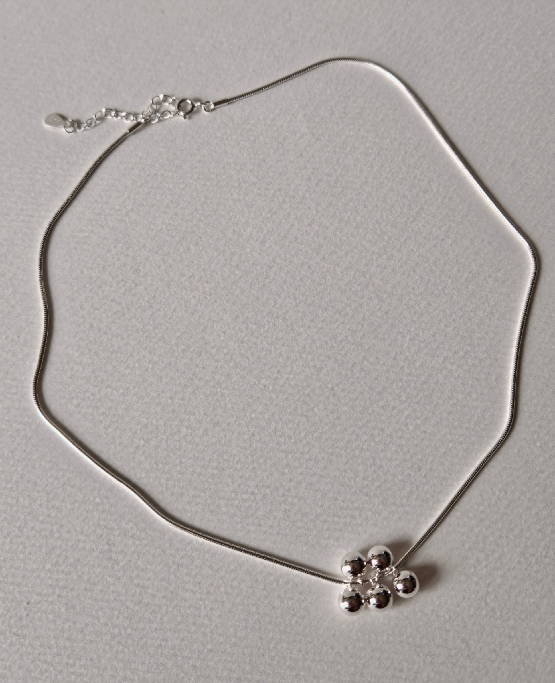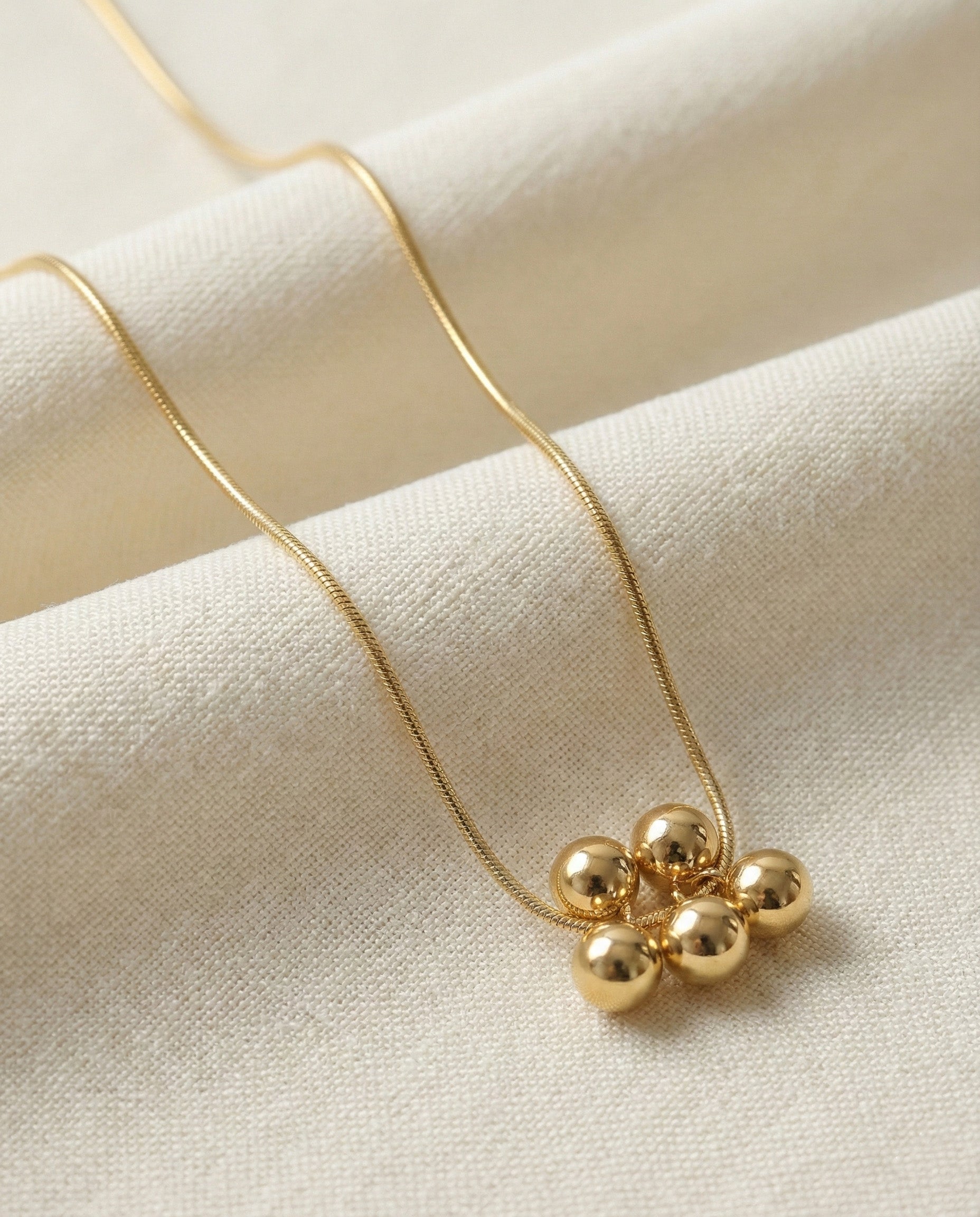 A clean, mirror–polished 5-ball cluster glides on a sleek snake chain. All parts are solid 925 sterling silver for hypoallergenic, everyday comfort and a crisp, modern glow. Perfect solo or layered.
