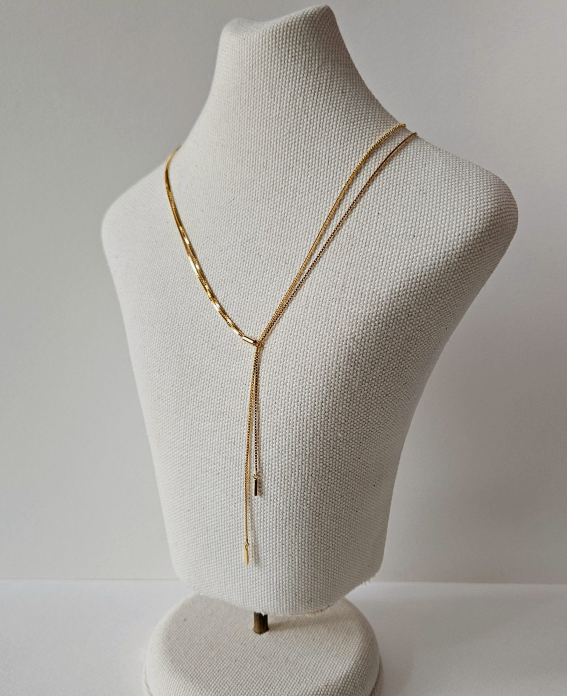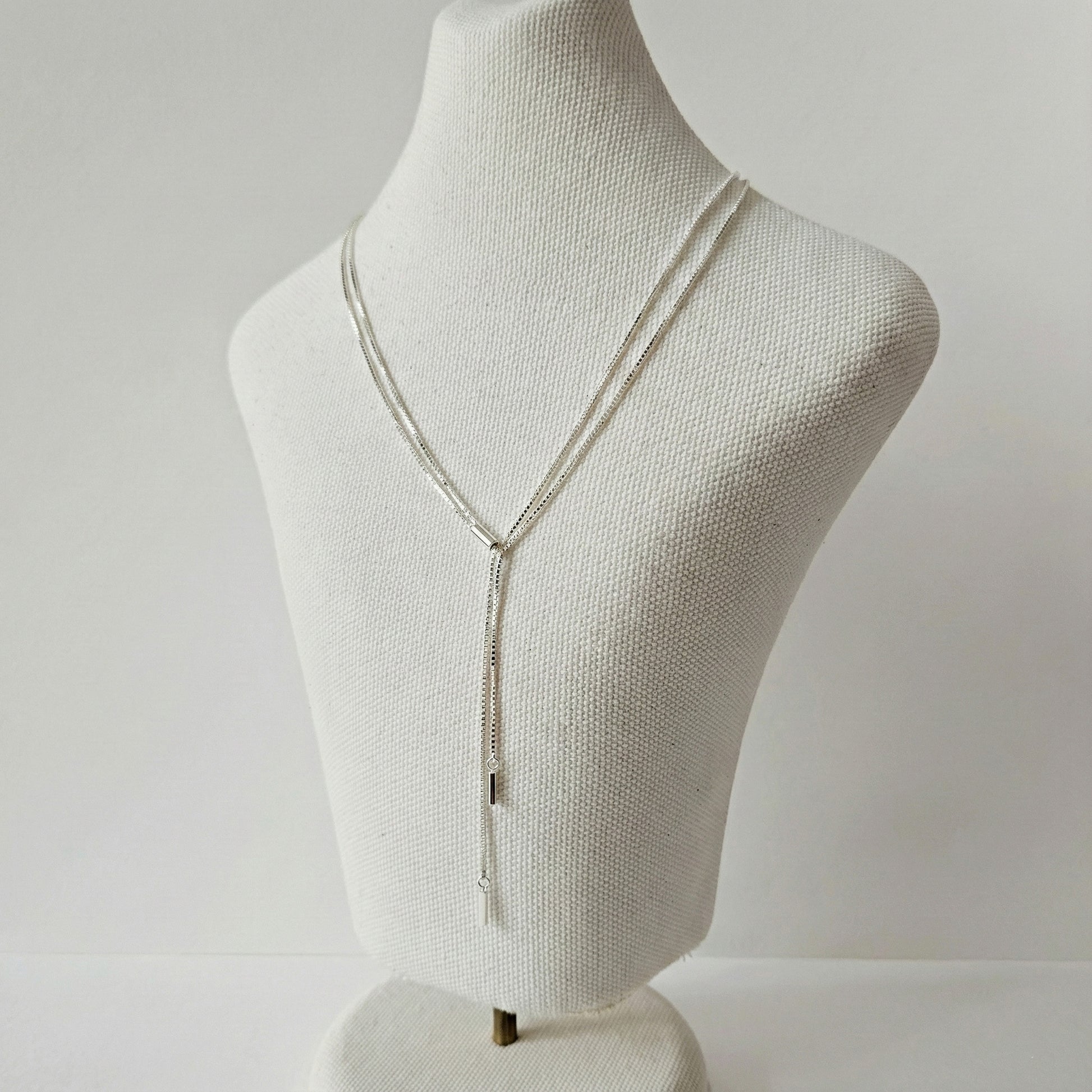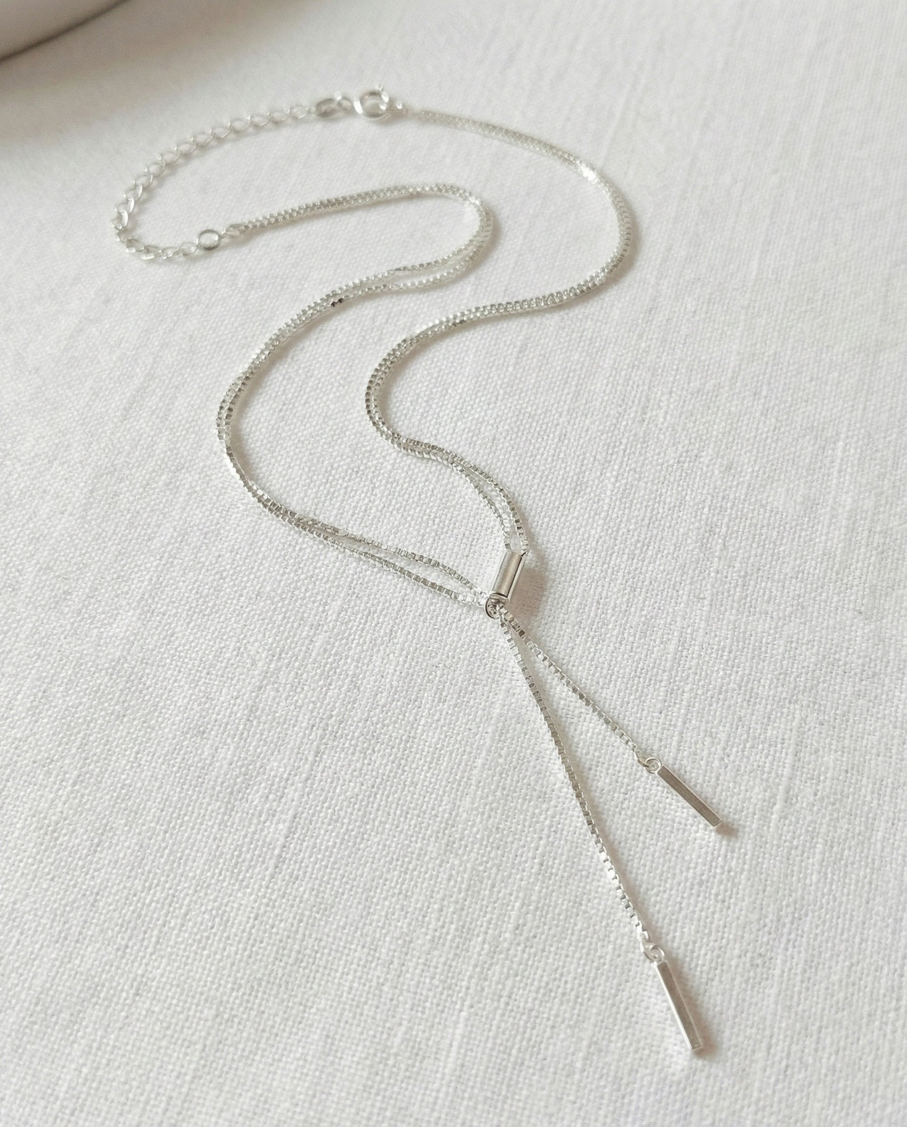 Minimal and clean. Sits beautifully with shirts, V-neck and knit tops. The Y drop draws a sleek line along the collarbone for a longer-looking neck.
