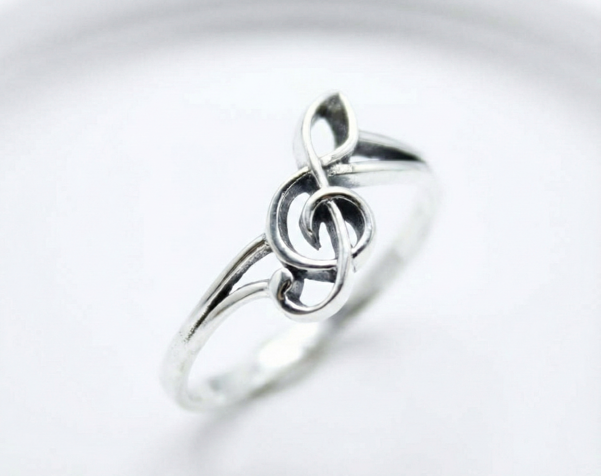 Handcrafted Sideways Treble Clef Ring · 925 Silver