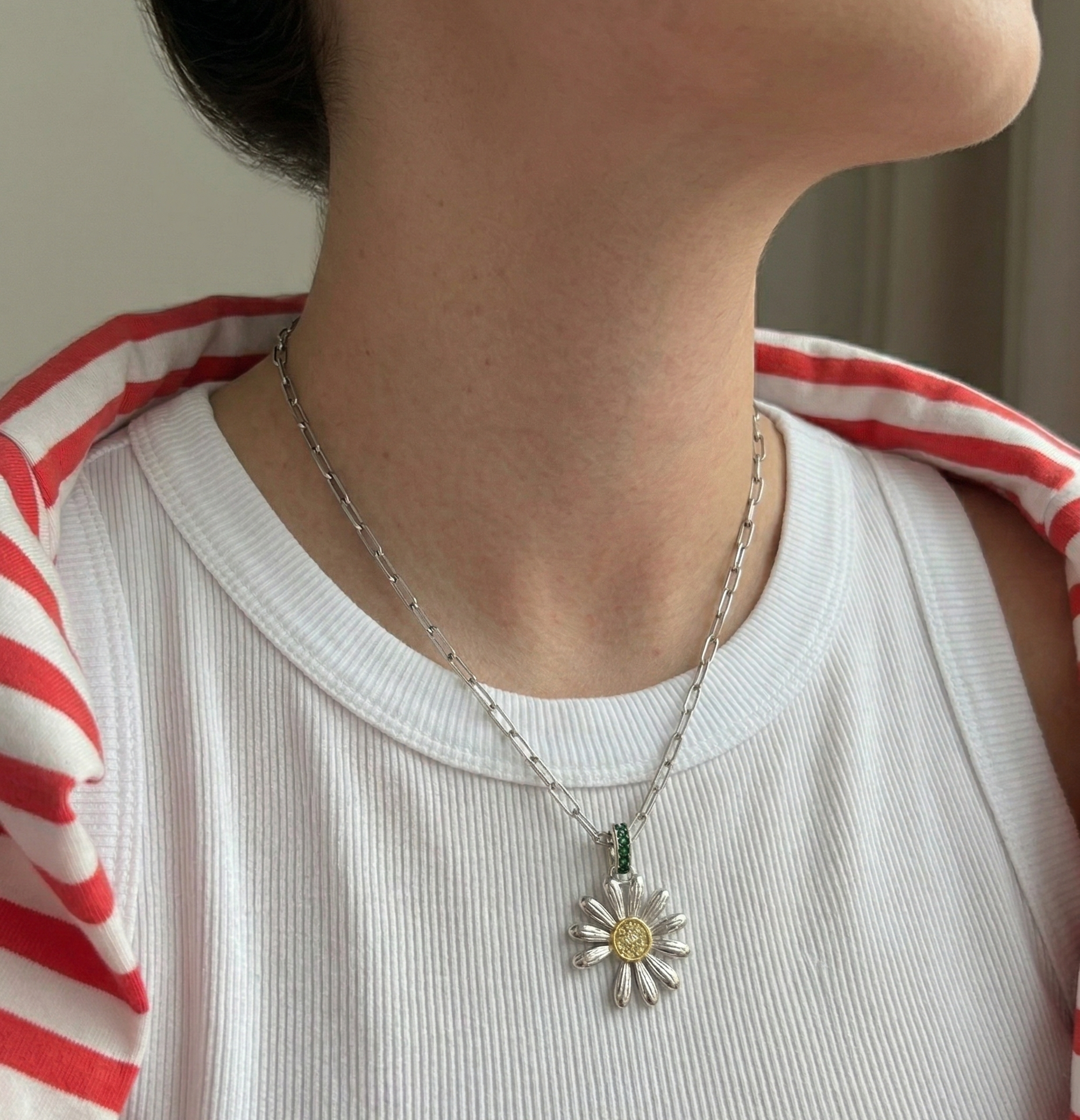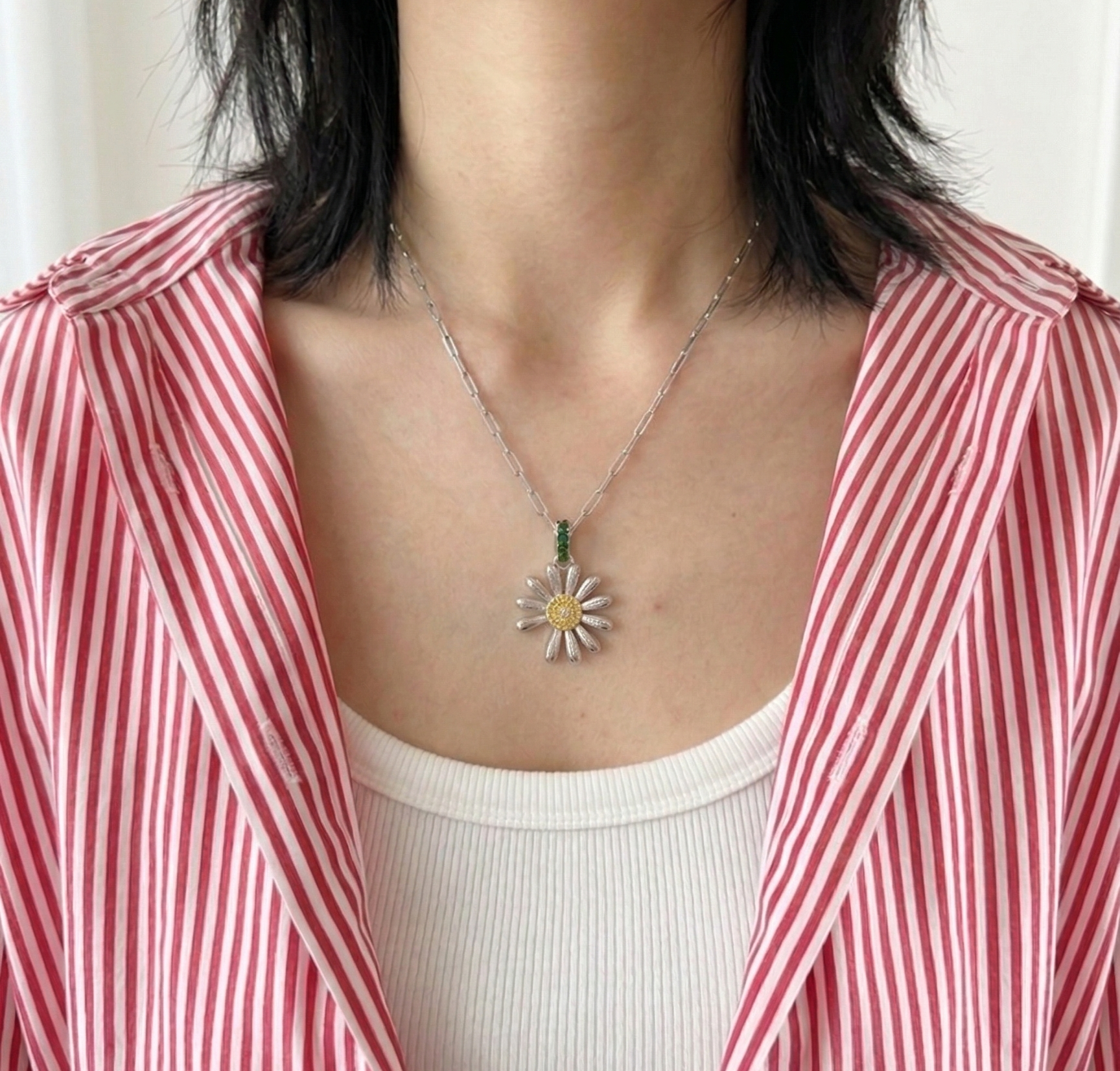 Meet the 925 Sterling Silver Daisy Pendant Necklace — a handcrafted floral statement piece that blends cottagecore softness with the edgy precision of K-style fine jewelry. Every single detail was designed to be noticed by those who know.