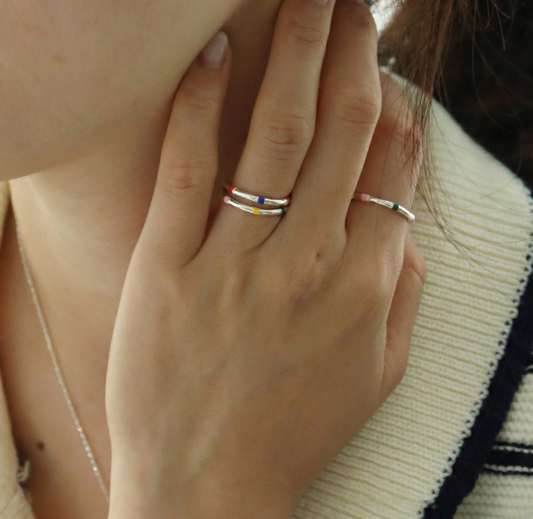 Solo: Slide it onto your index or middle finger for an effortless color pop. Minimal, but never boring.