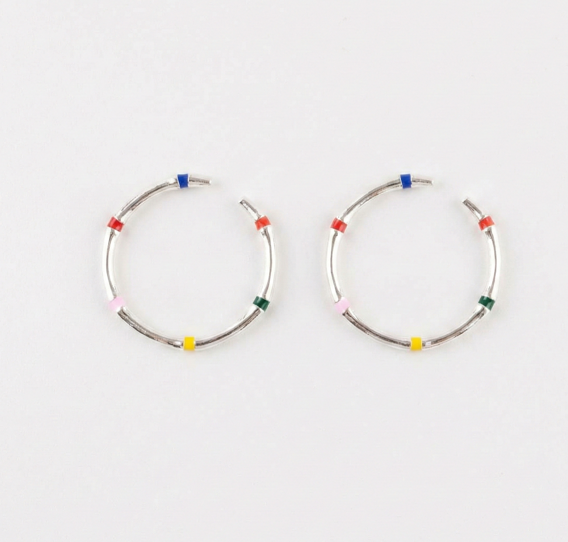 - Enamel Colors: Red · Blue · Yellow · Green · Pink (5 colors on each ring)