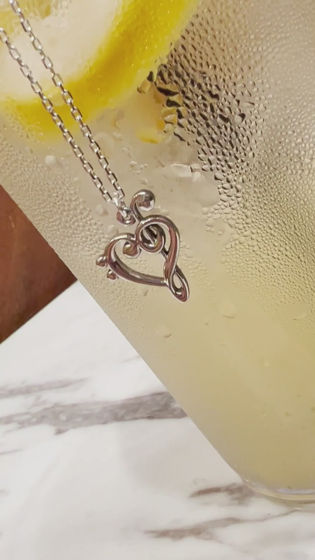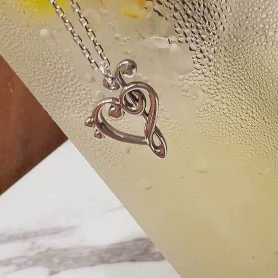 Heart Treble Clef Necklace — 925 Silver Music Note Pendant