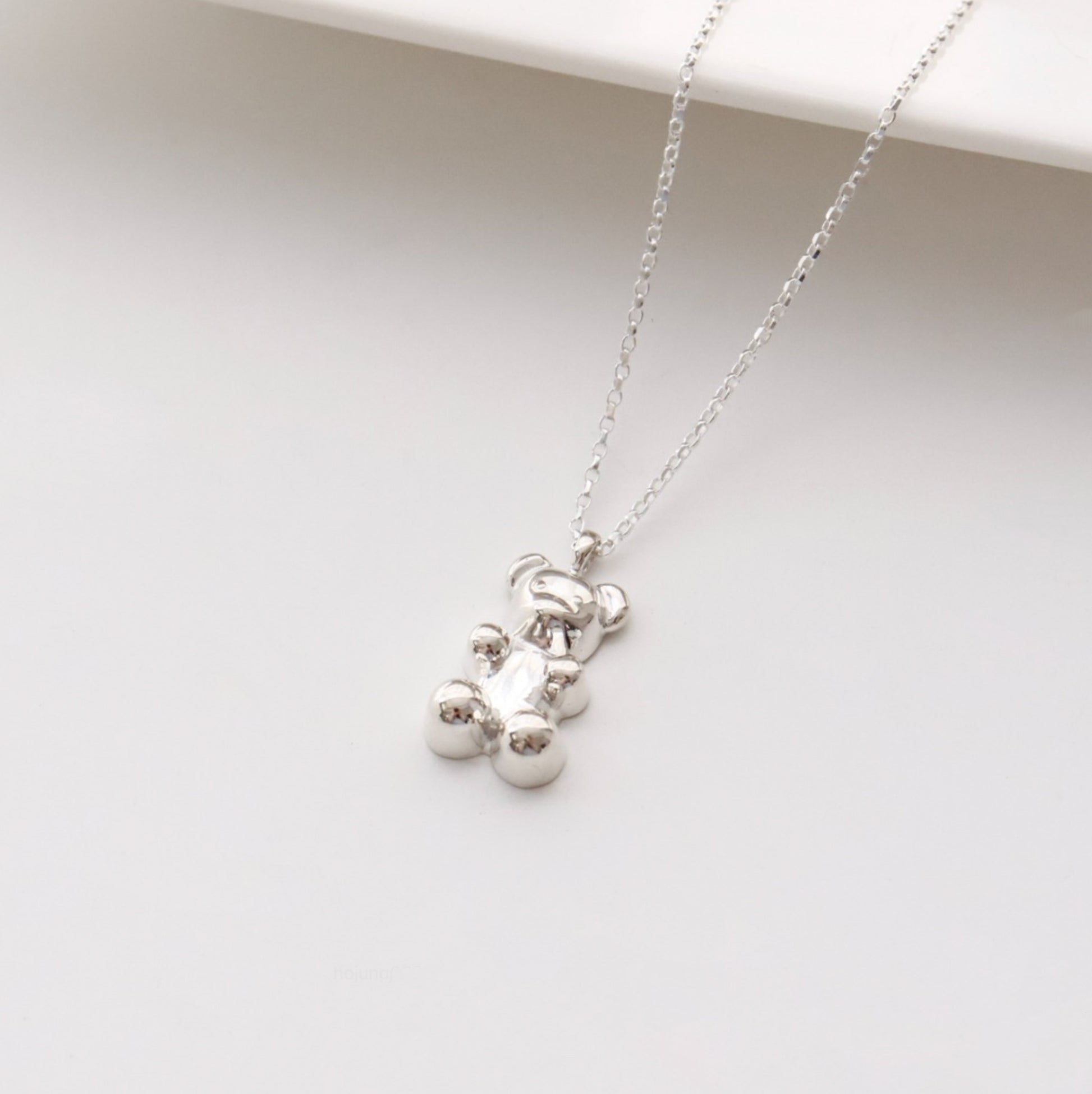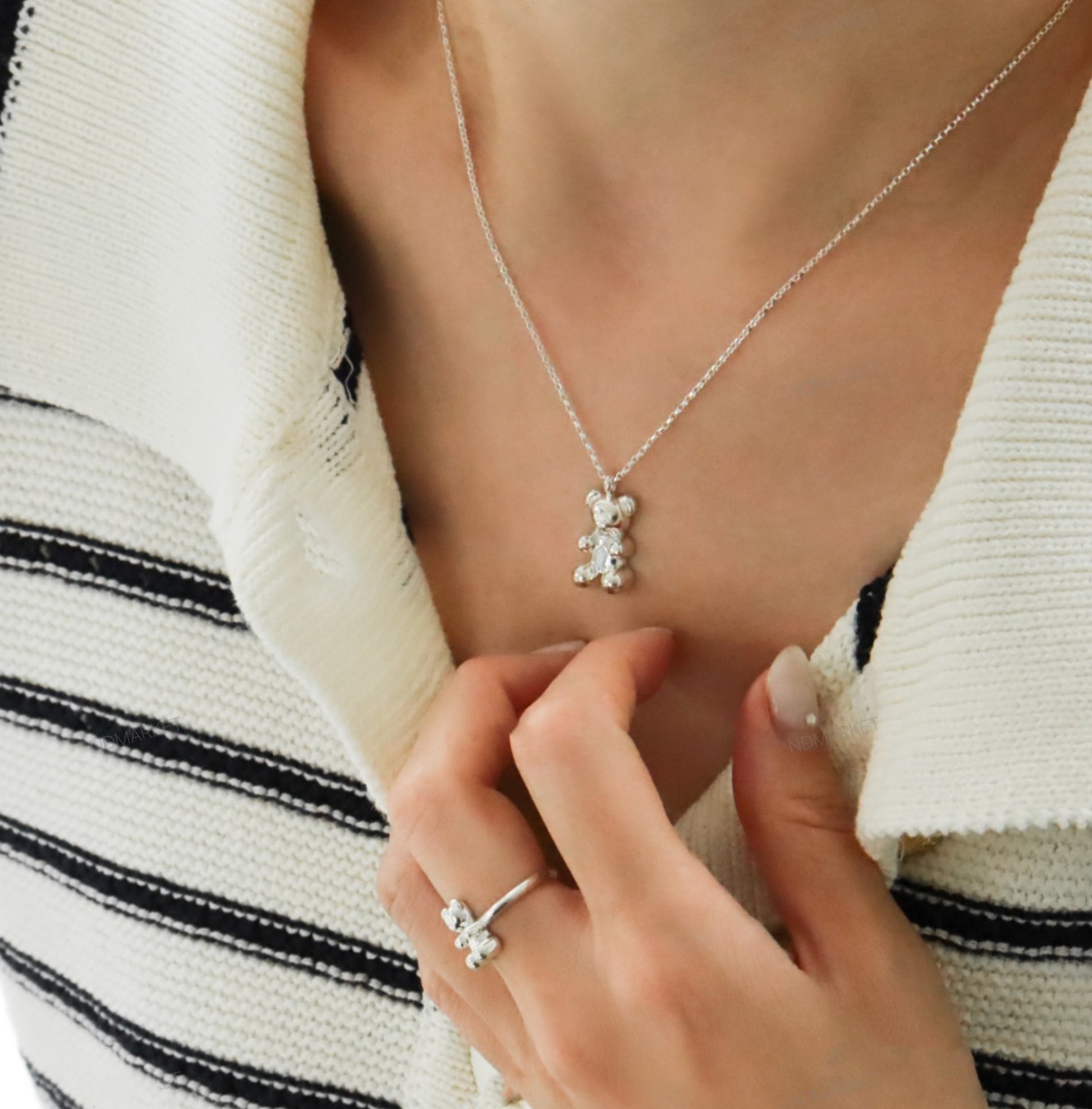 925 Sterling Silver Teddy Bear Necklace,Cute Minimalist Layering necklace