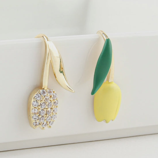 Two different tulips, one charming pair. This ear climber set hugs the ear for a sleek, modern line—one side sparkles with pavé CZ, the other pops with a matte enamel bud. Cute, lightweight, and easy for everyday.