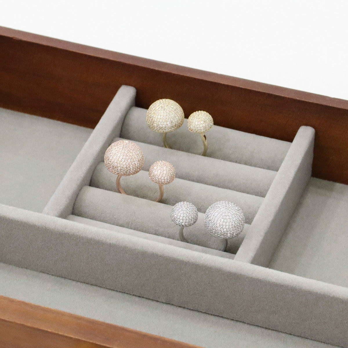 Keywords: pave ring, micro pavé ring, double dome ring, open ring free size, statement ring, gold ring, silver ring, rose gold ring, cubic zirconia ring