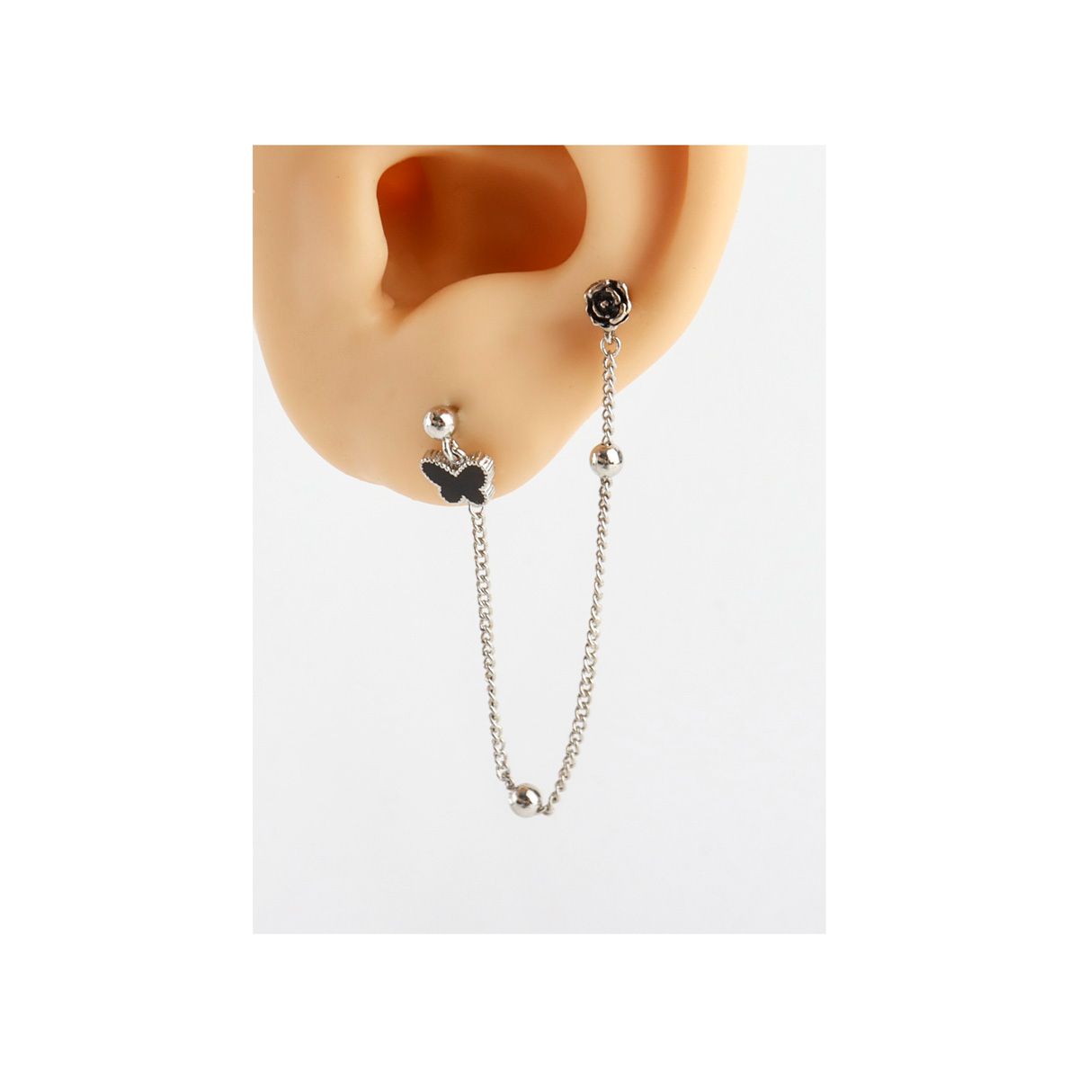 Surgical Steel Double Piercing Chain Earring Butterfly Rose Cartilage Barbell Stud