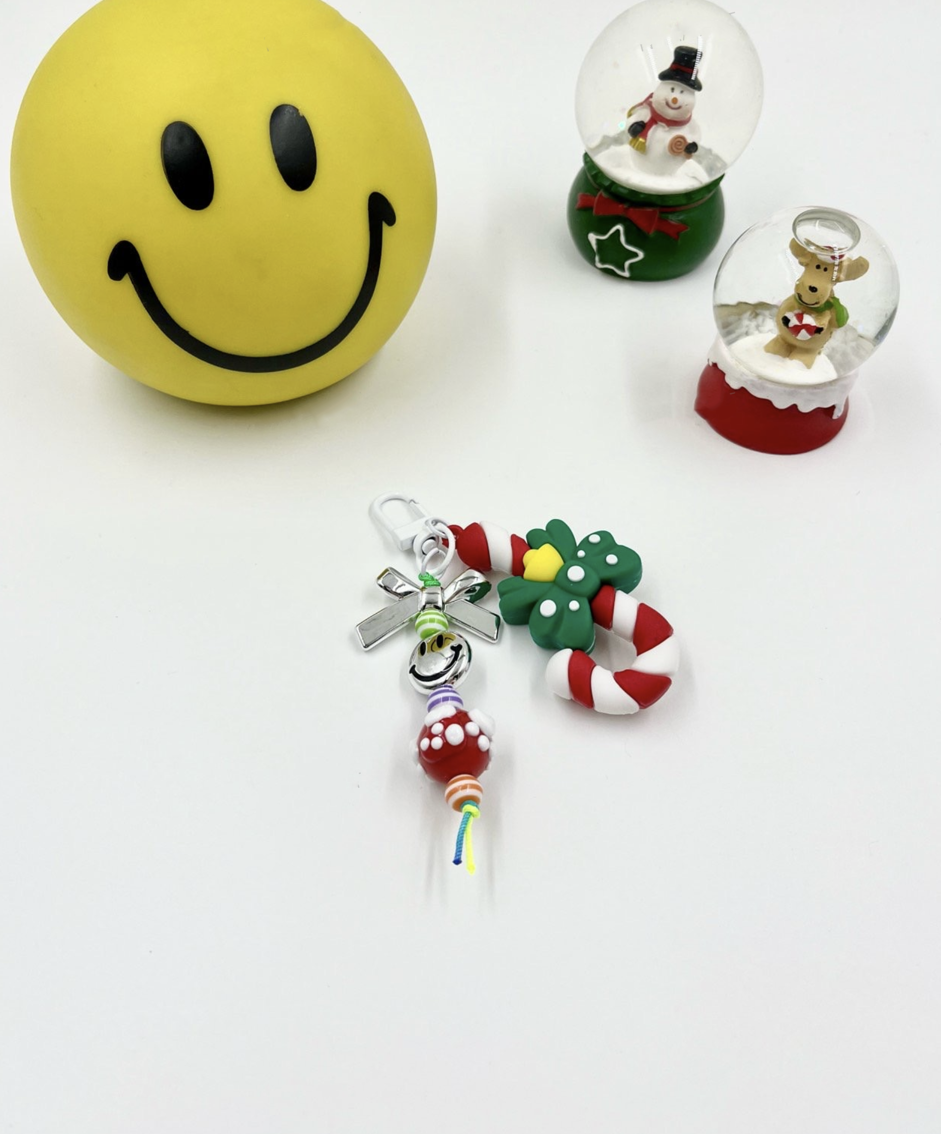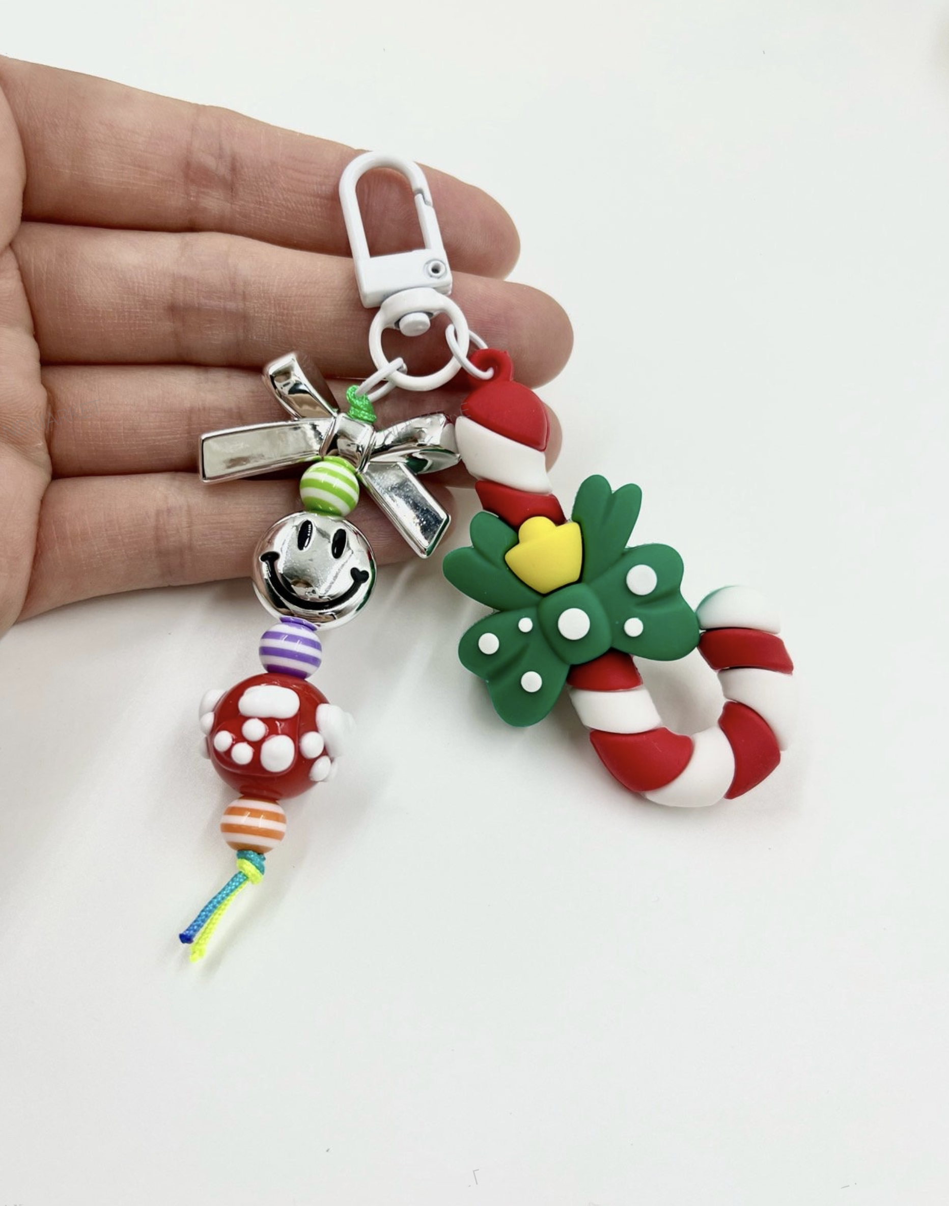 Christmas Keychain Charms – Candy Cane, Snowman & Wreath | Handmade in Korea