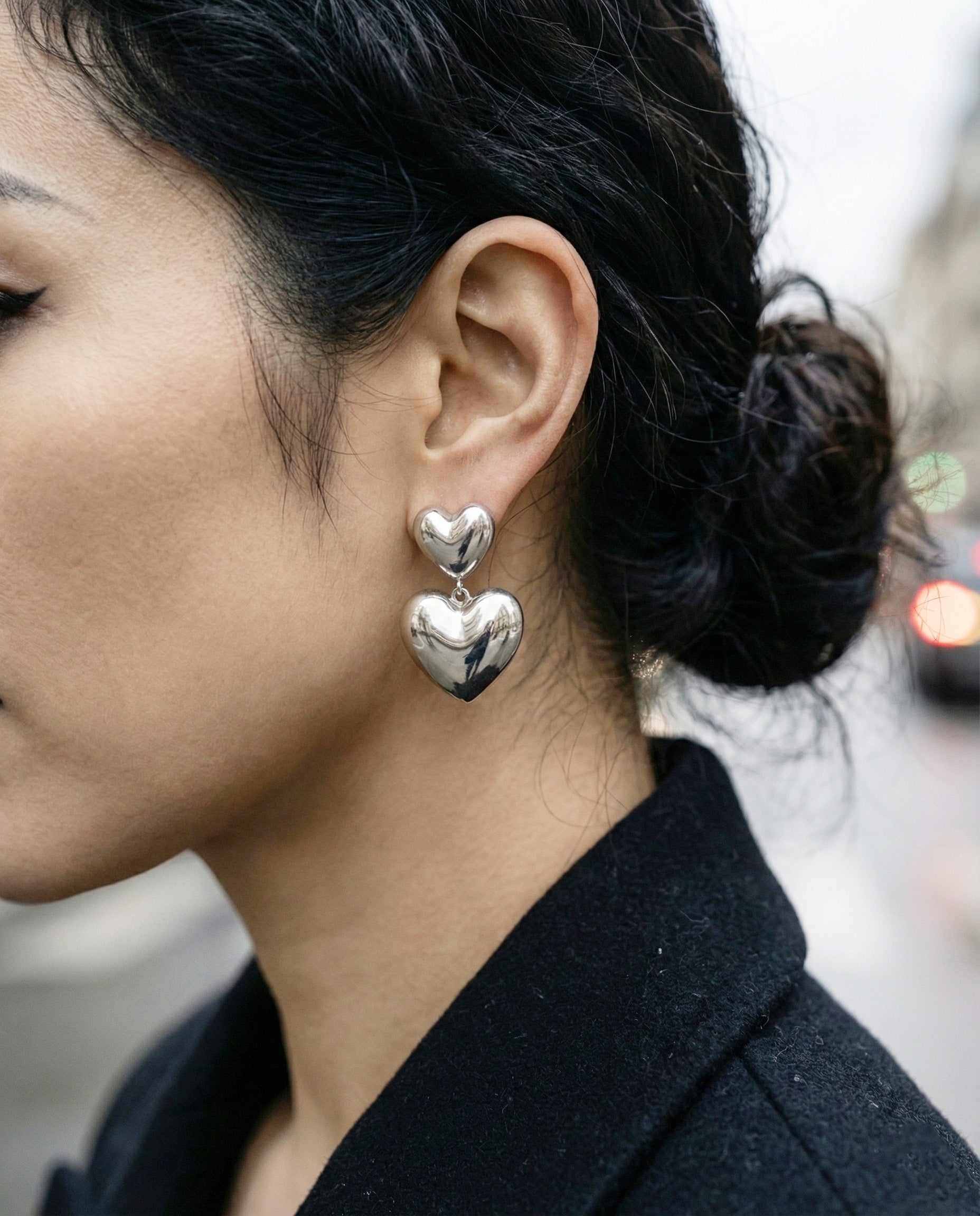 Transform your look in 3 seconds with these chunky puffed heart earrings. Featuring a 3D voluminous double-tier design that catches light beautifully, these earrings add instant drama to any outfit.