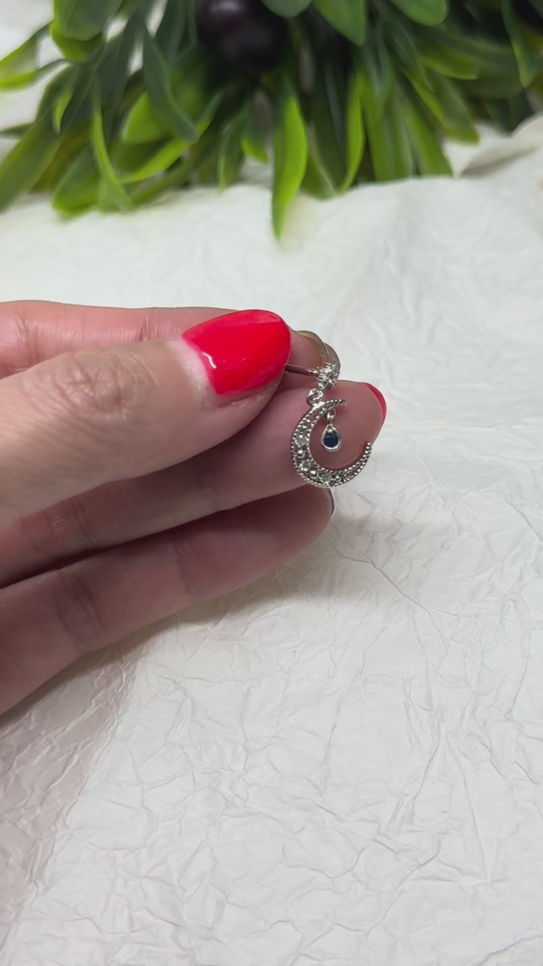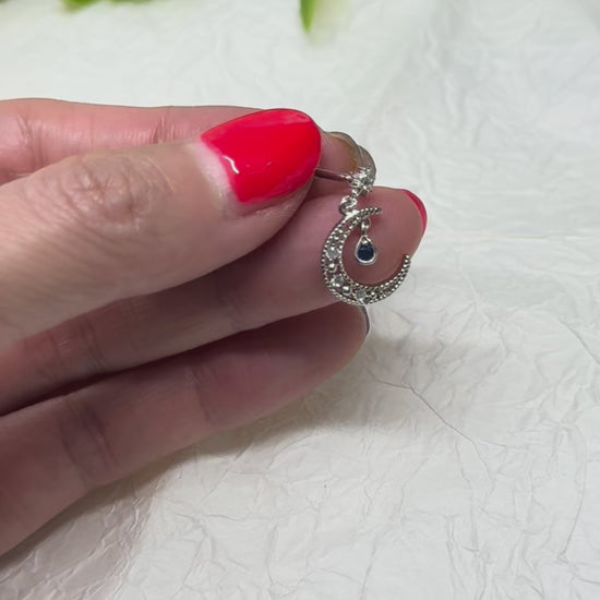 - Dangling sapphire-tone teardrop charm