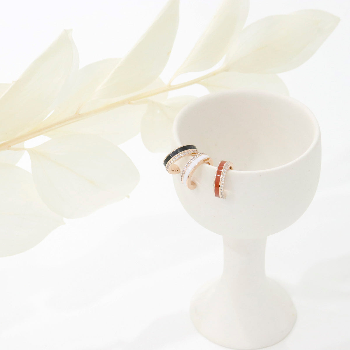 - Pavé CZ sparkle + enamel color line = clean, modern contrast