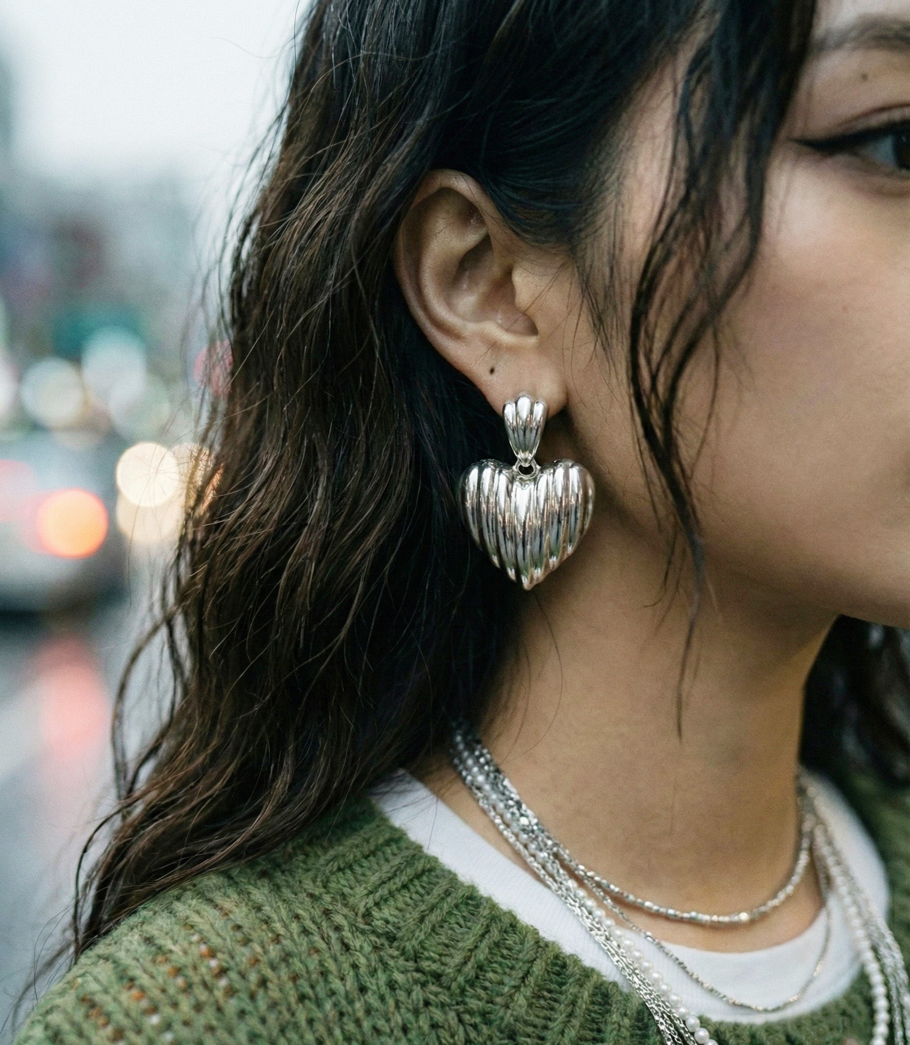 These aren't your typical heart earrings. Featuring a unique vertical ribbed texture that catches light from every angle, these chunky statement studs bring instant sophistication to any look. One pair, endless compliments.
