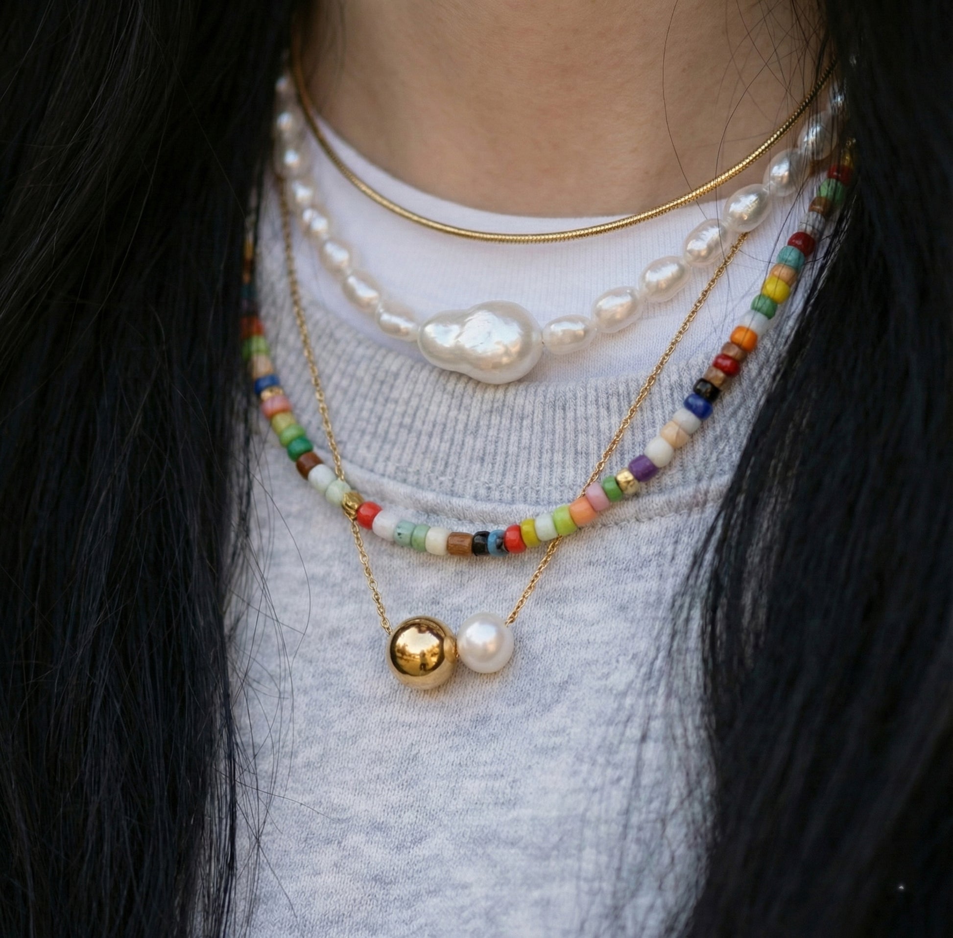 Meet your new favorite piece: a double-strand choker necklace that eliminates the guesswork of layering. The sleek brass wire hugs your neckline like a modern neck cuff, while lustrous freshwater pearls cascade naturally along your collarbone. The result? An effortlessly chic, layered look—achieved with just one piece.