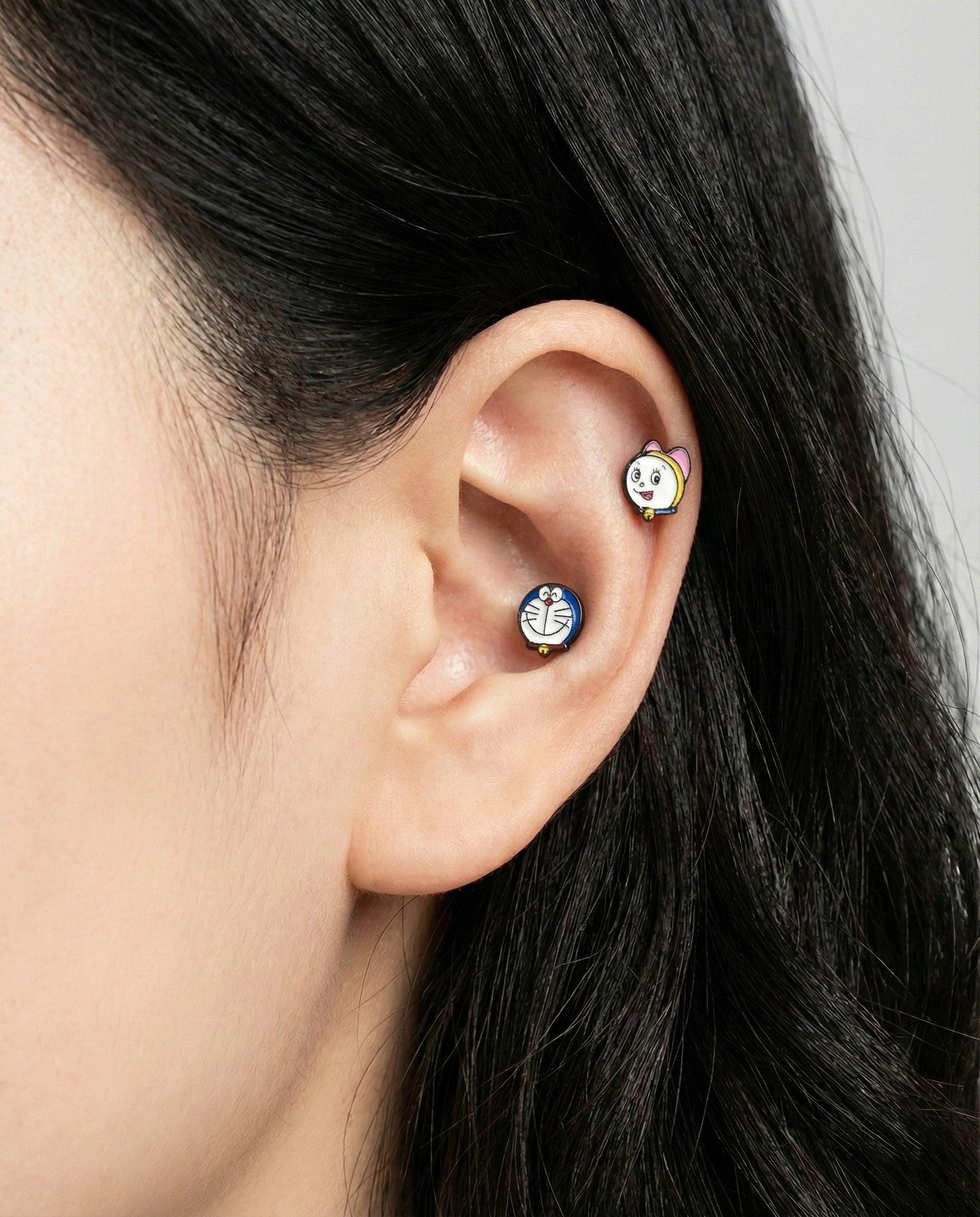 Doraemon & Dorami Surgical Steel Piercing Studs - Hypoallergenic Anime Earrings Made in Korea