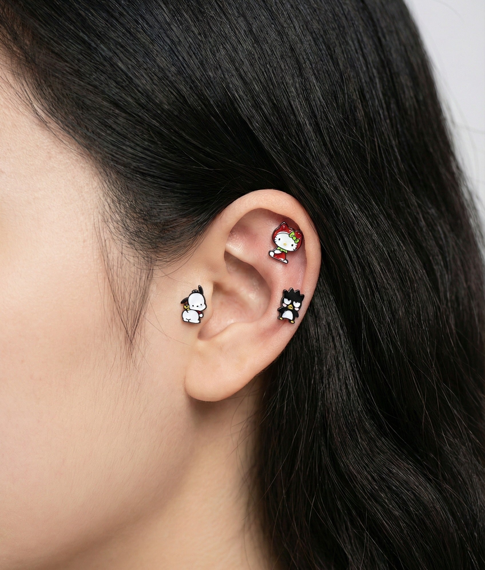 Whether you're building your ear stack or starting fresh, these handmade Badtz-Maru and Chococat studs bring personality and charm to any piercing setup.