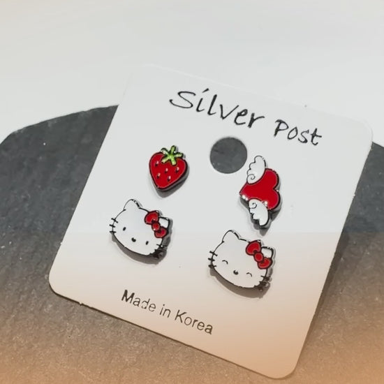 Hello Kitty & Sanrio Character Earring Set | 4 Pairs | 925 Silver