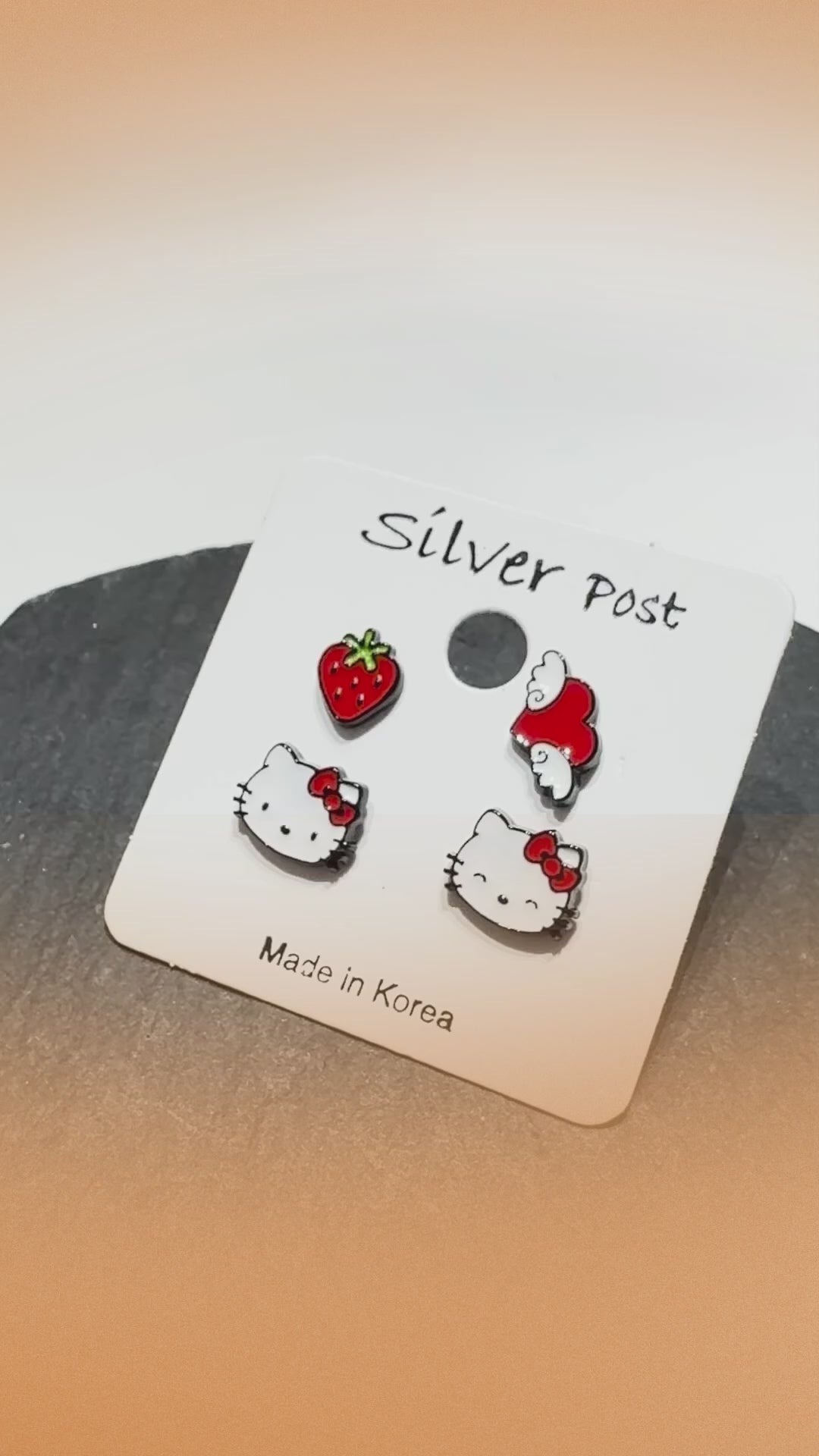 Our Handmade Hello Kitty & Sanrio Character Earring Sets are designed for anyone who loves kawaii style and playful accessories. Each set features beloved characters like Hello Kitty, Kuromi, My Melody, and sweet motifs like strawberries and winged hearts—all handcrafted with care and finished with sterling silver posts for sensitive ears.