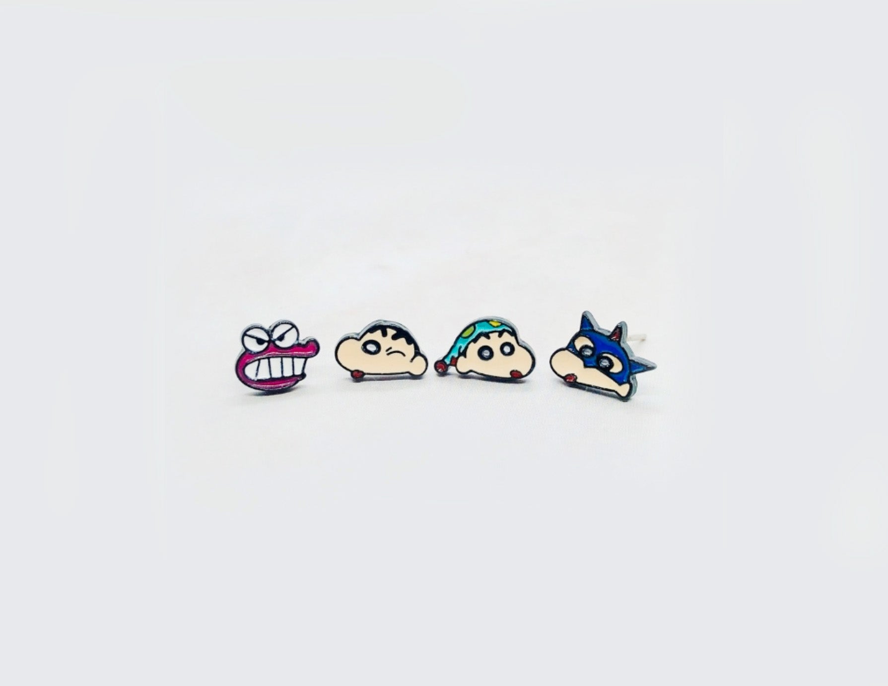 Bring your favorite mischievous 5-year-old to life with this Handmade Crayon Shin-chan Silver Post Earring Set. Featuring adorable character designs, these hypoallergenic earrings are safe for sensitive ears and perfect for daily wear.
