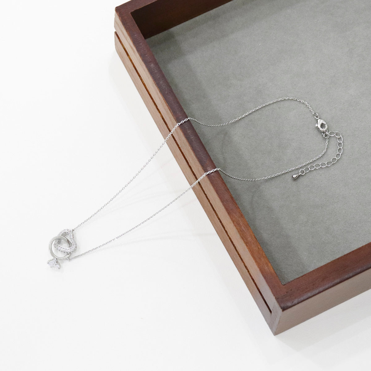 This exquisite piece features a shimmering pavé-set heart beautifully intertwined with a classic solitaire ring. Designed for the modern woman who loves a touch of romance and luxury, this necklace carries the timeless meaning of love and promise.