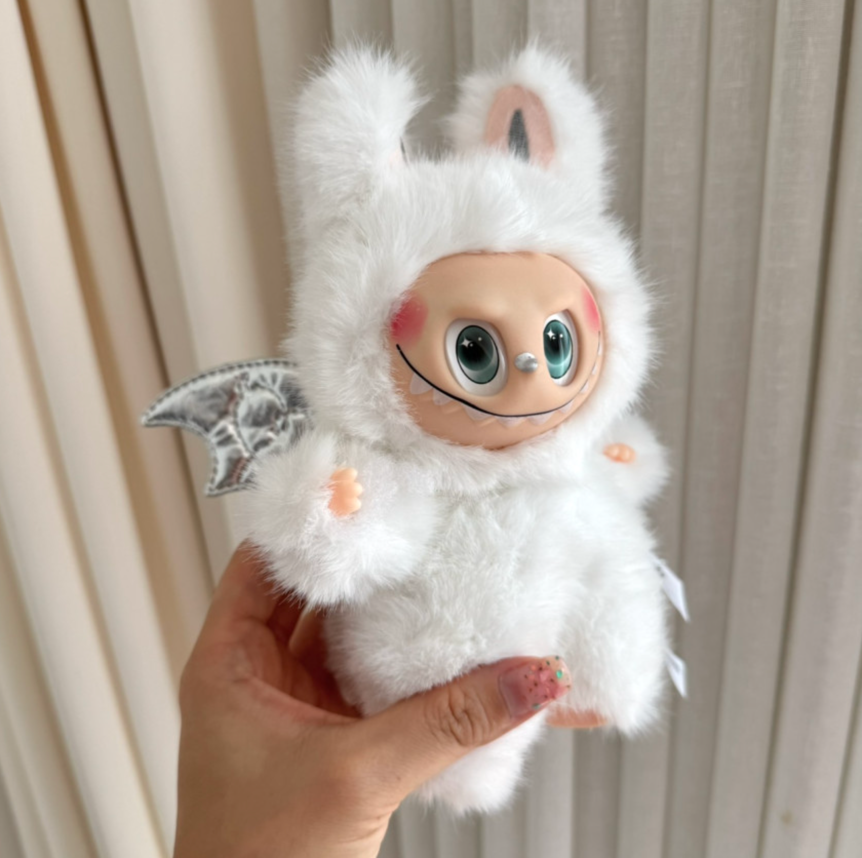 This La Bubu-style Zimomo monster plush keychain brings soft chaos and cuddly joy wherever it goes. With fuzzy faux fur and colorful PU wings, it's ready to charm your bag, your shelf, or your mood.