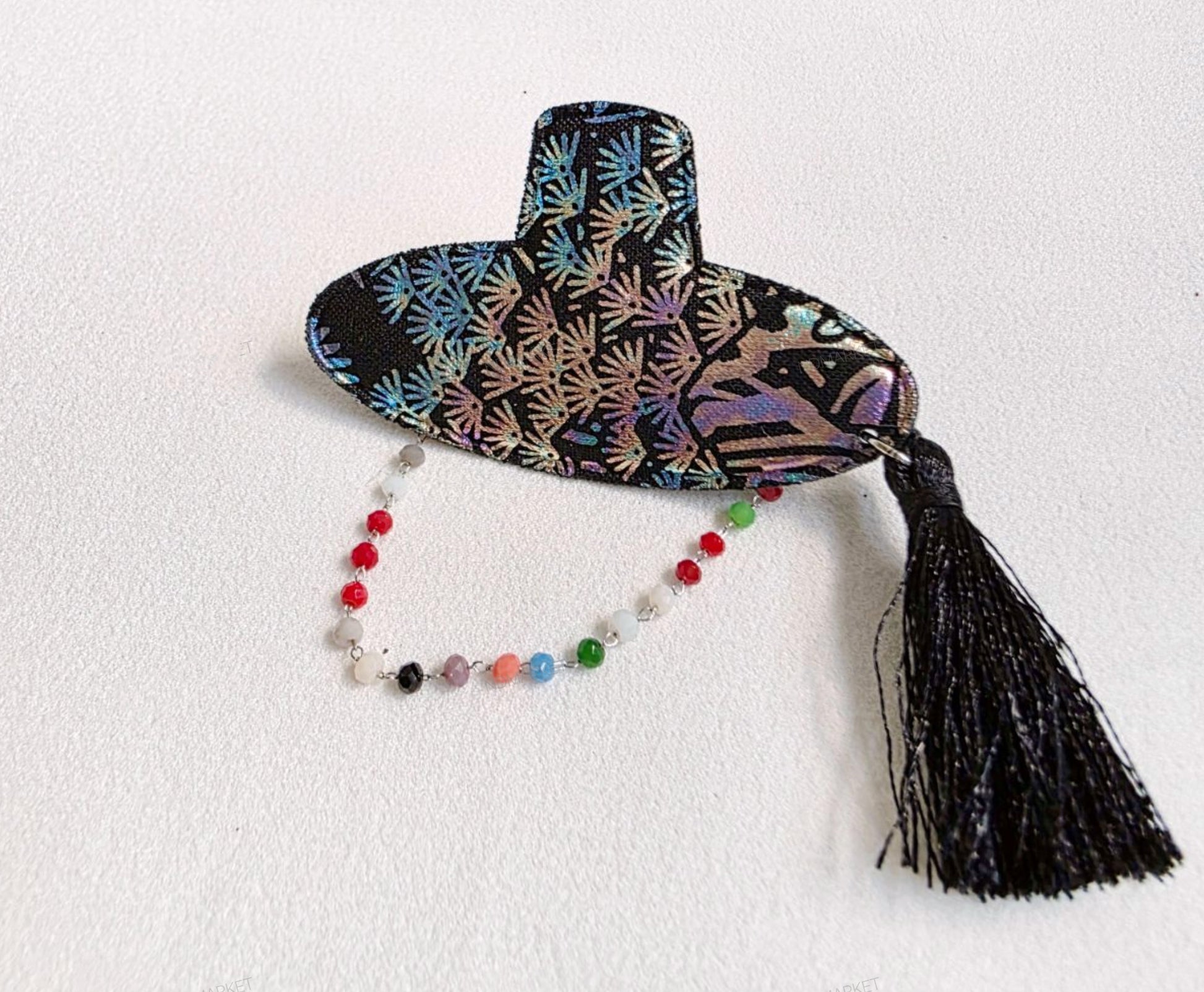 Inspired by the traditional Korean gat (갓) — the iconic wide-brimmed hat worn by scholars and noblemen — this handmade hair clip brings centuries of heritage into your everyday look. Whether you're a K-pop fan, a cosplay enthusiast, or simply love statement accessories with meaning, this piece is designed to turn heads.