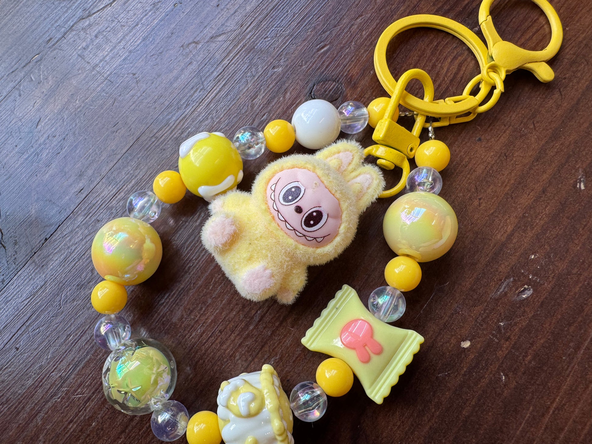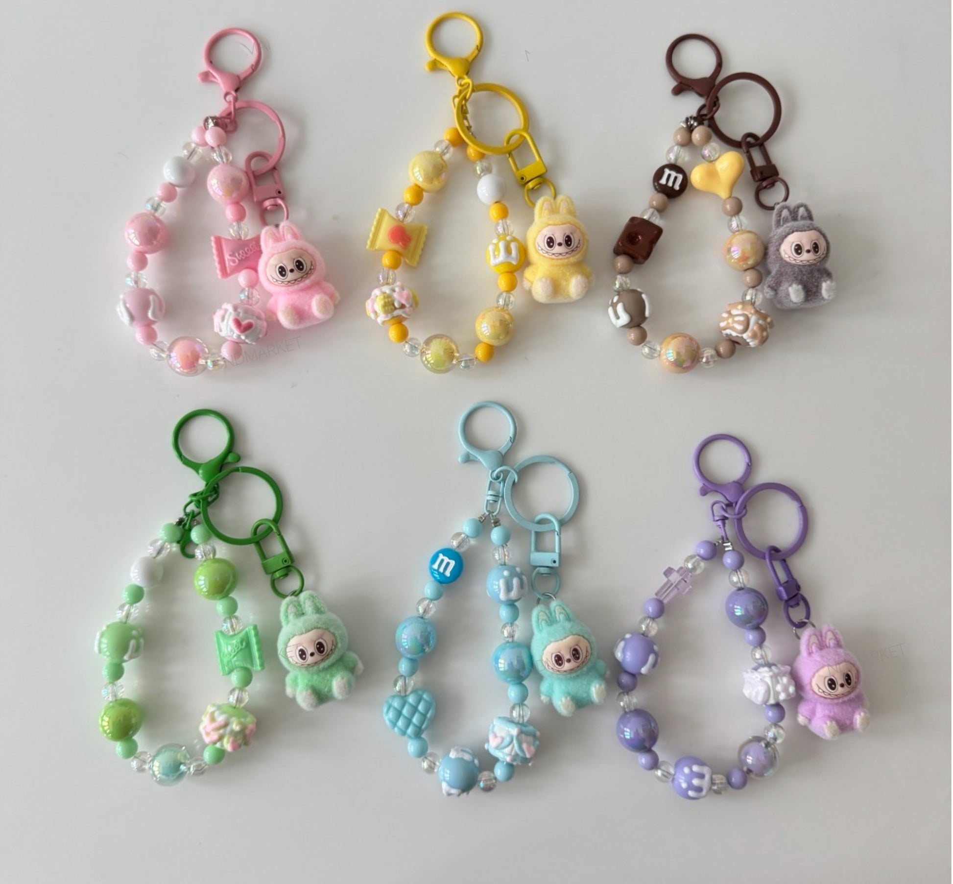 Meet your new pocket-sized cutie friend β a soft, chunky plush buddy with dreamy pastel beads and playful charms.