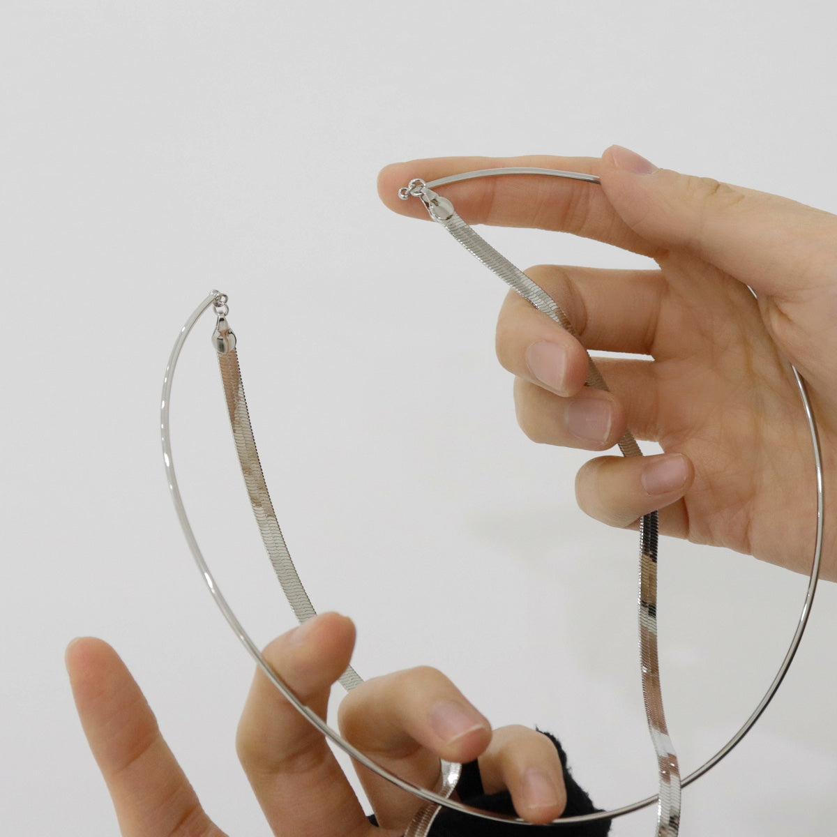 A sleek and modern layered necklace featuring a snake chain and slim choker design.