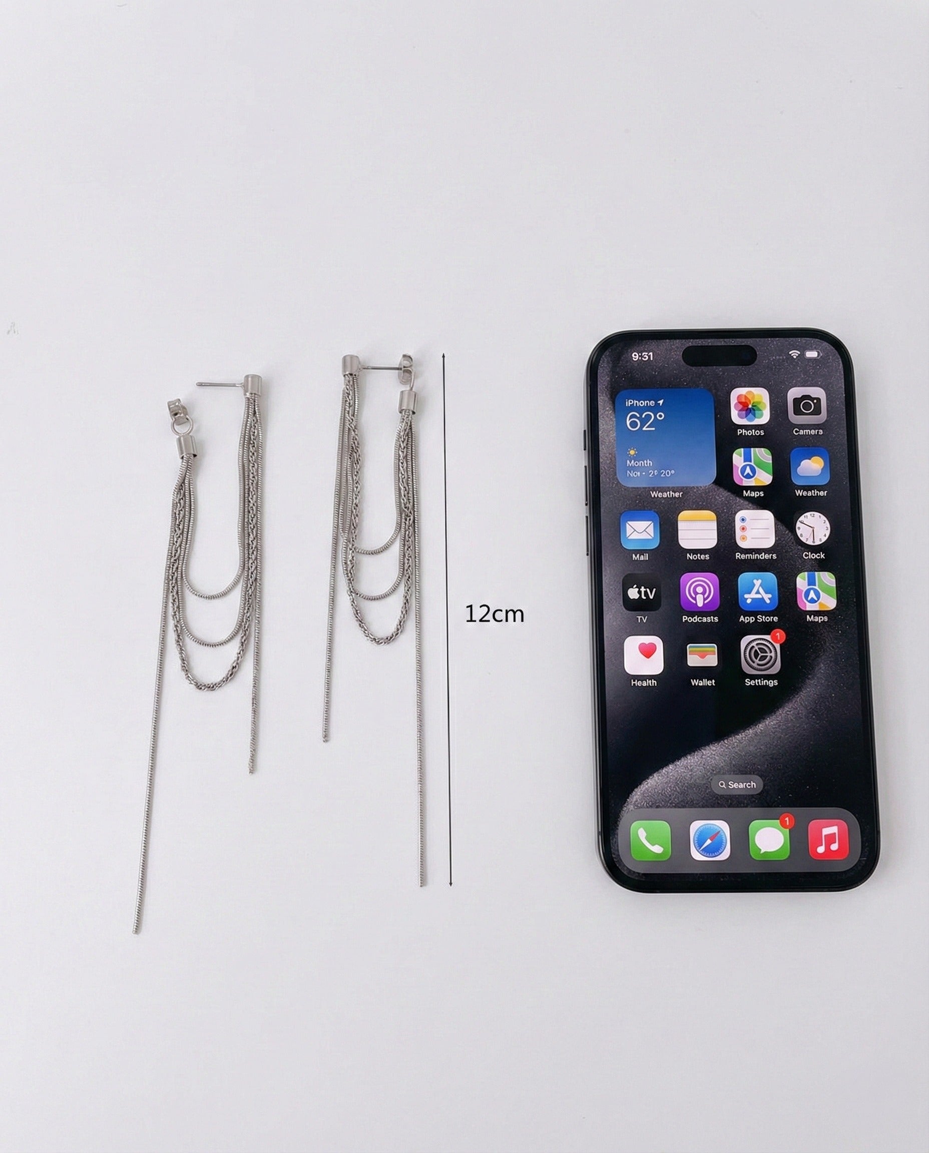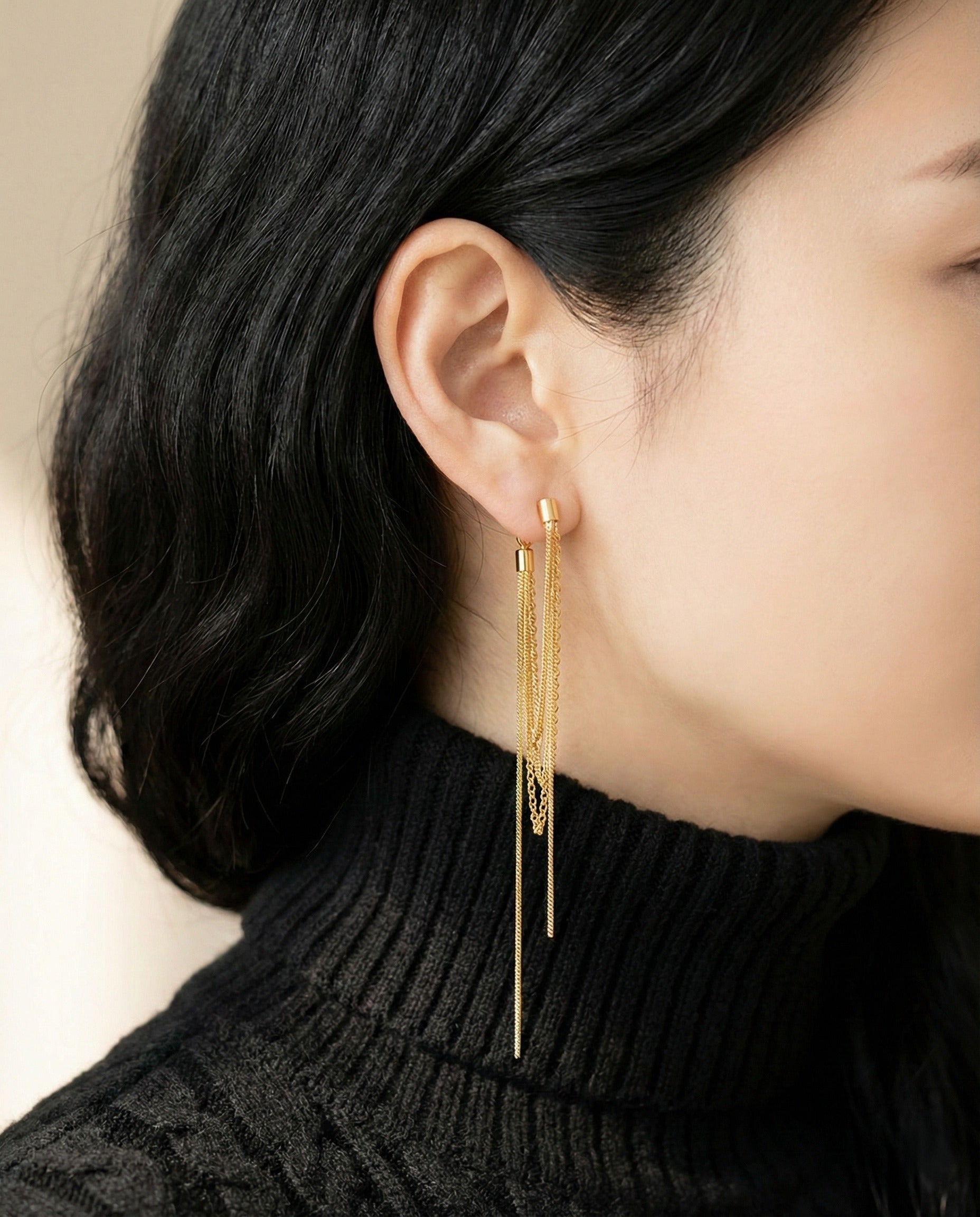 Discover the unique beauty of Front & Back Chain Earrings. These long tassel drop earrings feature a distinctive dual-sided design: delicate chains drape from the front earring post, while longer snake chains cascade from the back clasp, creating a stunning layered effect as you move.