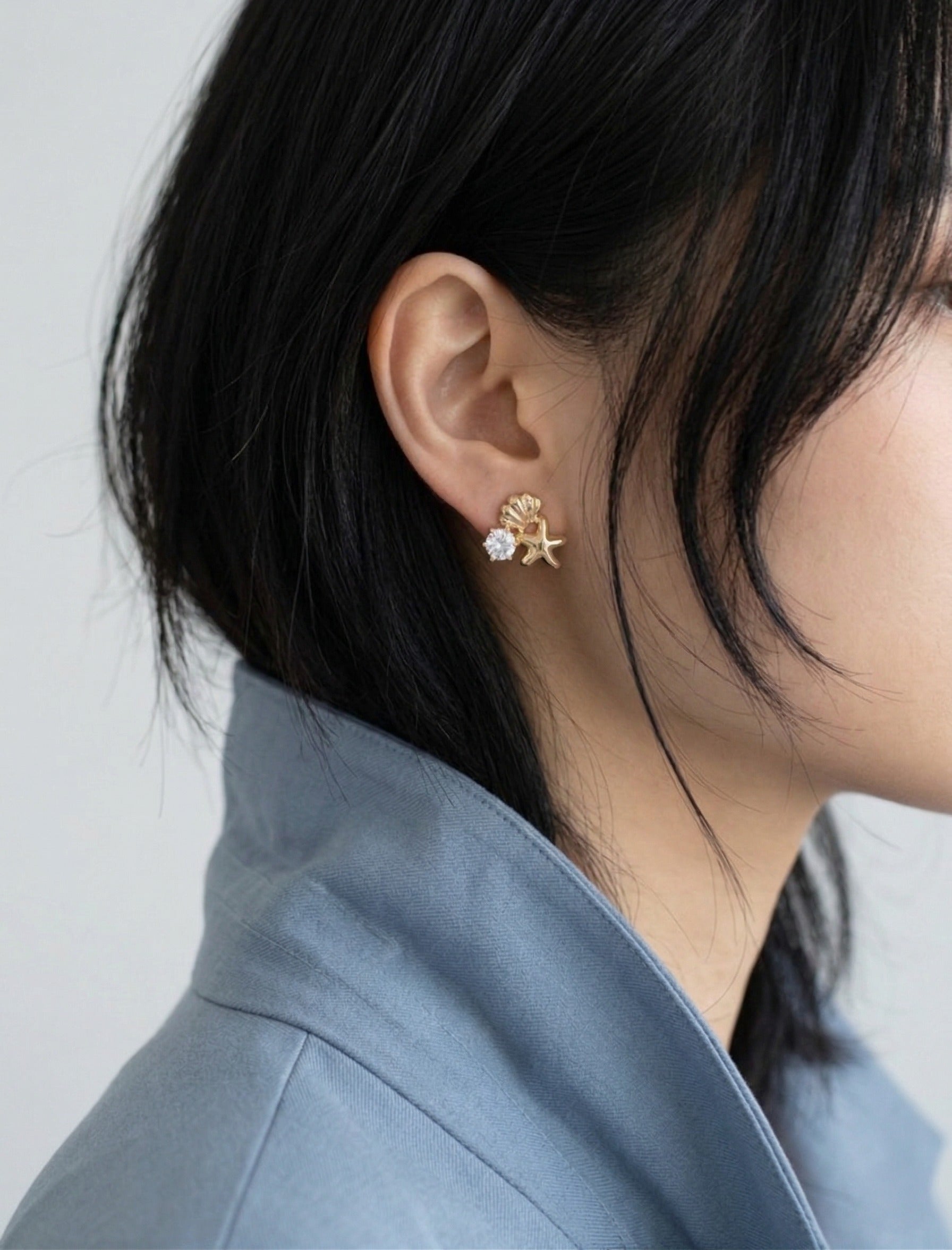 These studs sit flush against the earlobe for a clean, elevated look that moves effortlessly across aesthetics — mermaidcore, coastal chic, coquette, old money summer, or simply "I wanted something that looks expensive and feels like nothing." Wear solo for understated seaside charm, or layer into a curated earscape with simple hoops or ear cuffs for a more editorial finish.