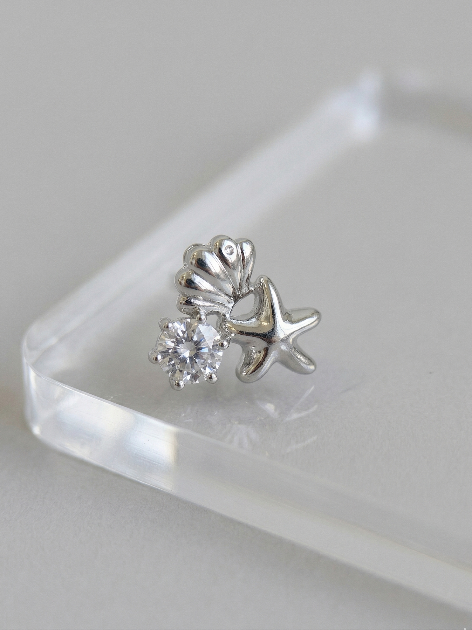 A small but considered detail worth noting: a secondary micro CZ is set into the crown of the shell motif — a subtle flourish that rewards a closer look and catches light from unexpected angles.