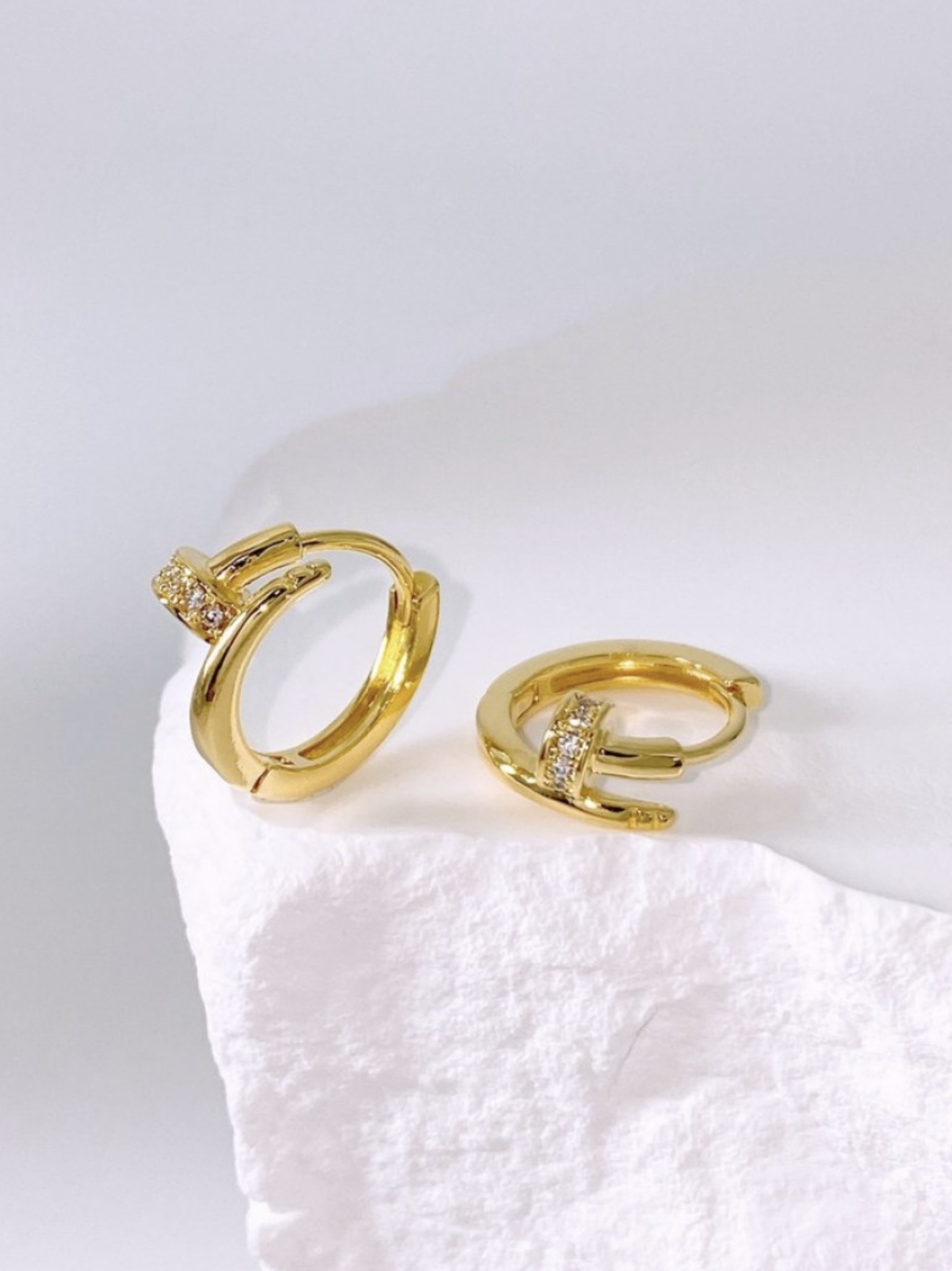 Clean lines, a subtle “nail” bar, and an easy hinge closure. Choose a smooth finish or a CZ accent for a touch of light. Designed for effortless, modern wear.
