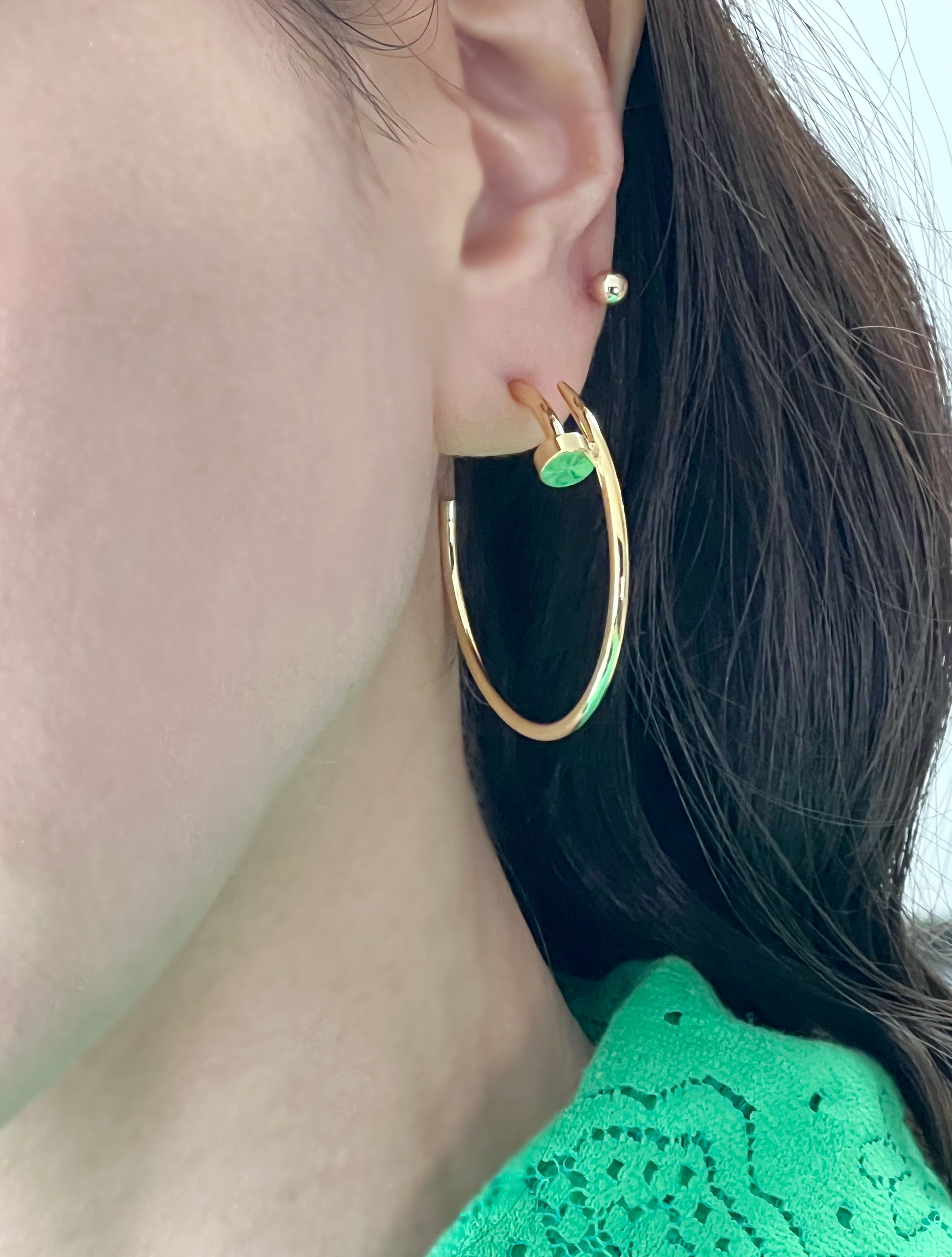Sleek brass construction with a unique screw-inspired design — architectural, modern, and effortlessly cool. Available in three finishes (gold, silver, rose gold), these hoops add instant edge to any look.
