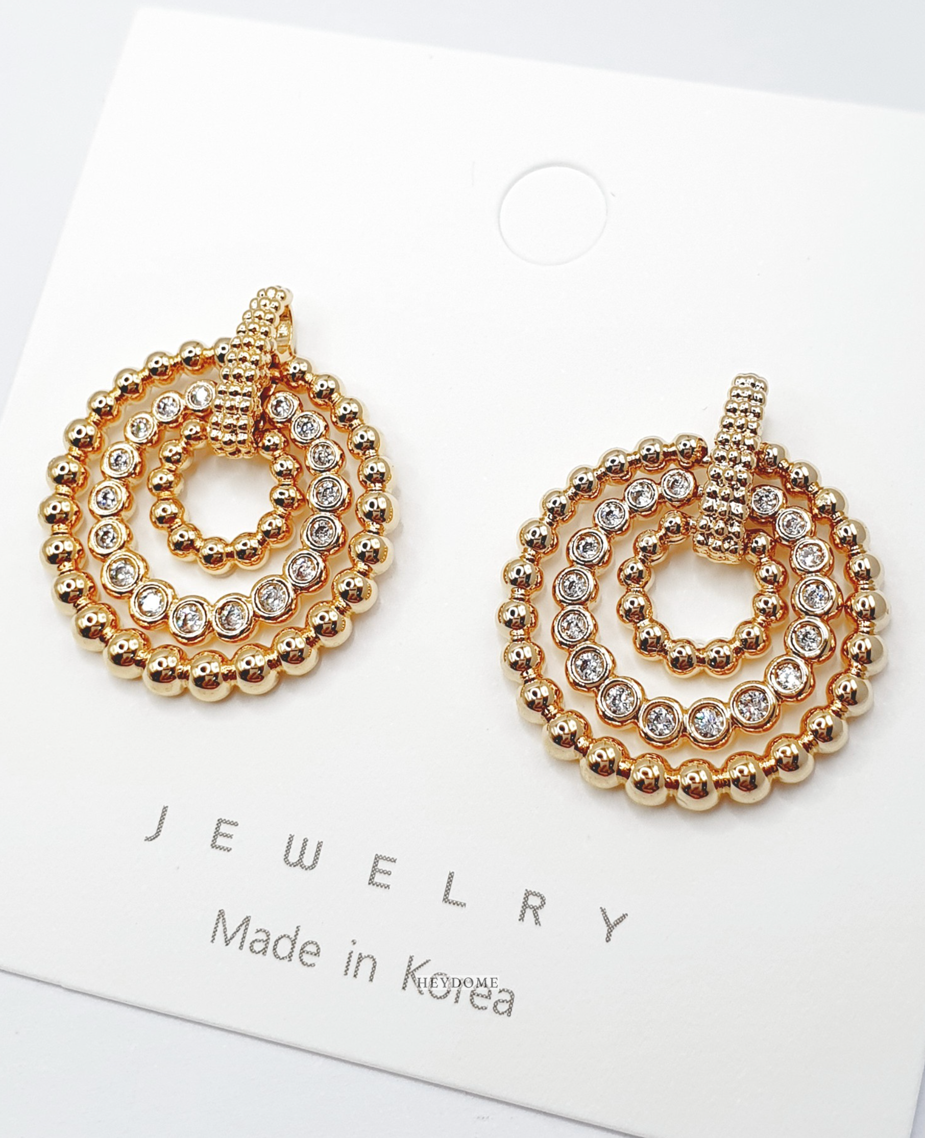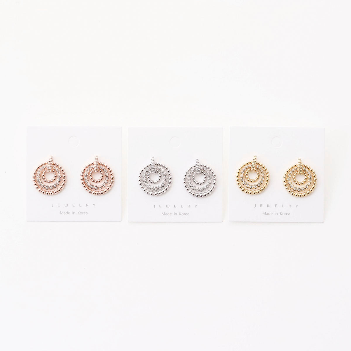 These modern triple-circle earrings feature three layered hoops that move independently, creating graceful light reflections with every turn.