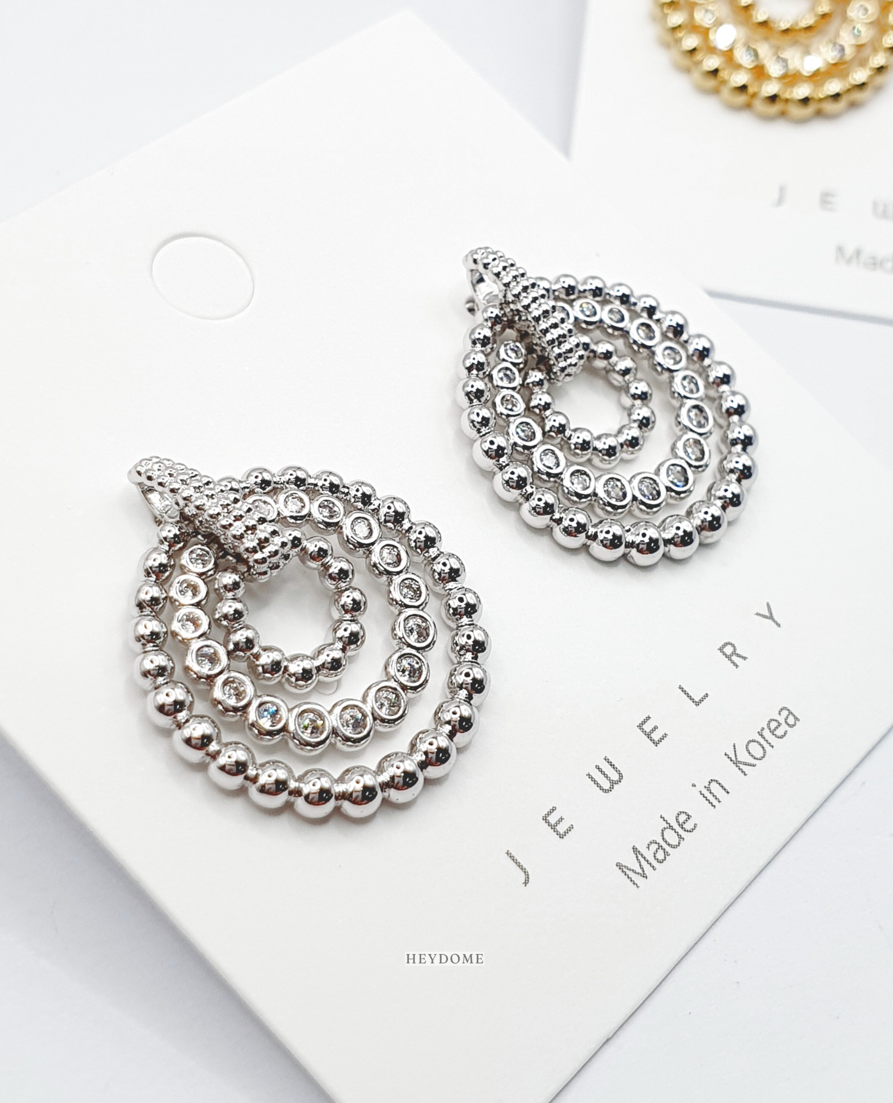Each earring is carefully crafted with attention to detail. The movable mechanism is smooth and secure, ensuring the circles move gracefully while staying perfectly in place. The combination of CZ stones and beaded texture creates visual depth and dimension.